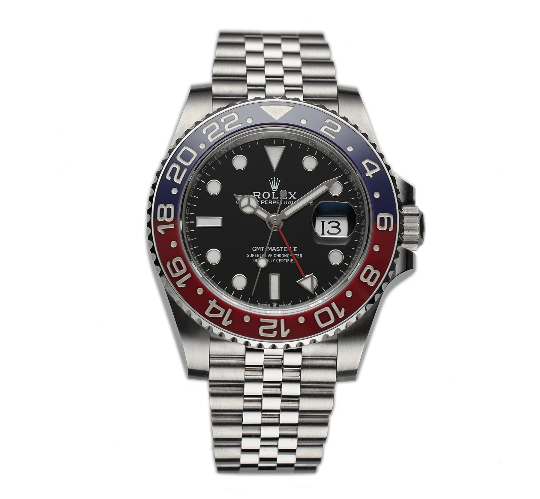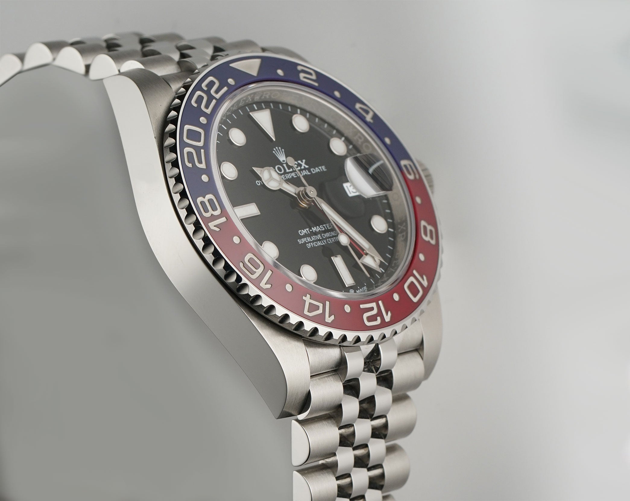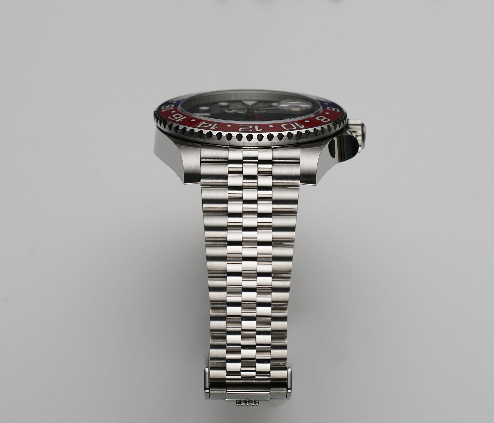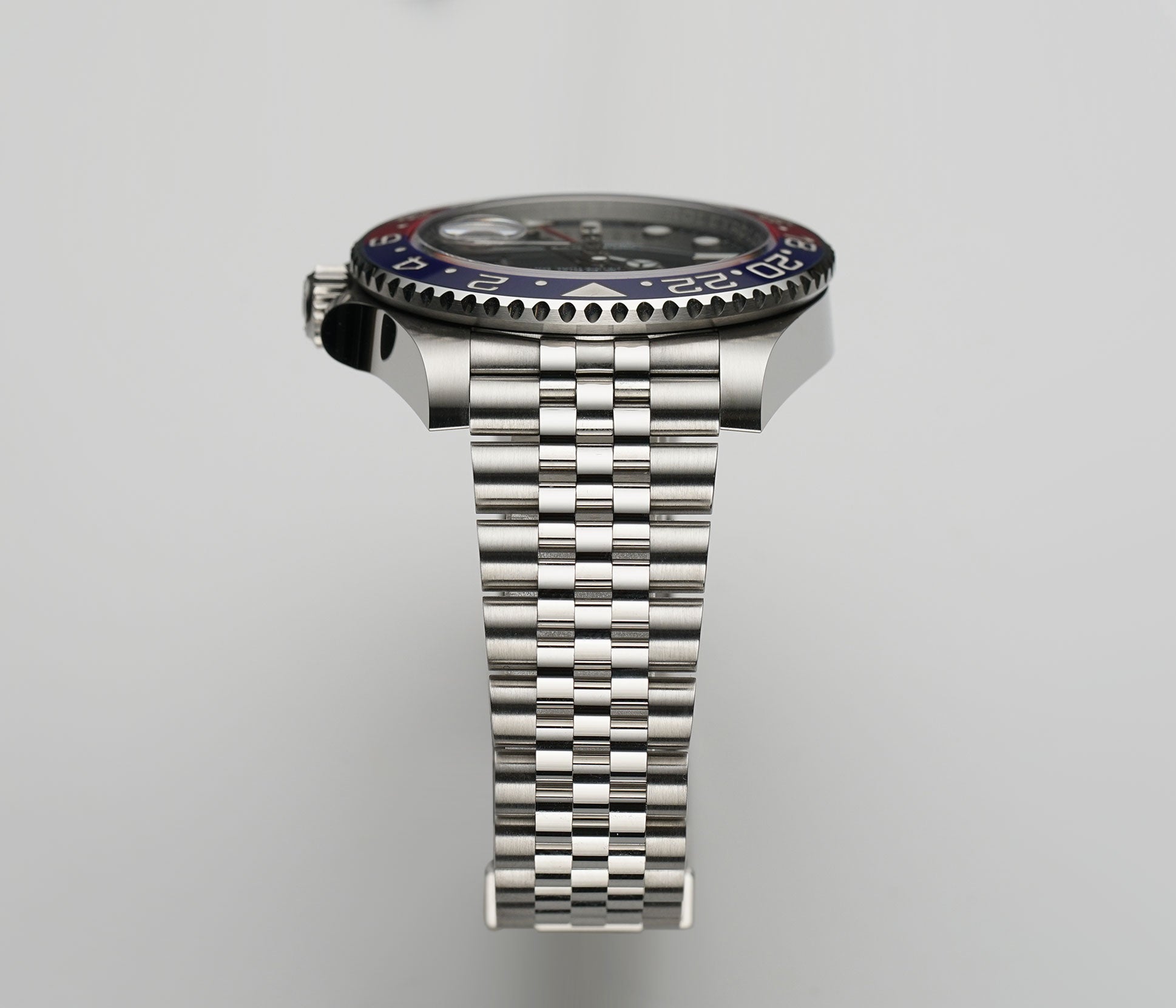 The case is made of a stainless steel with satin finished lugs and mirror-finished sides. Mounted atop the case is a stainless steel bezel equipped with a 24-hour red and blue (Pepsi) ceramic bezel insert. Screwed in to the case is a solid stainless steel case back and a stainless steel crown. The jubilee bracelet features satin finished outer links and mirror-finished center links.