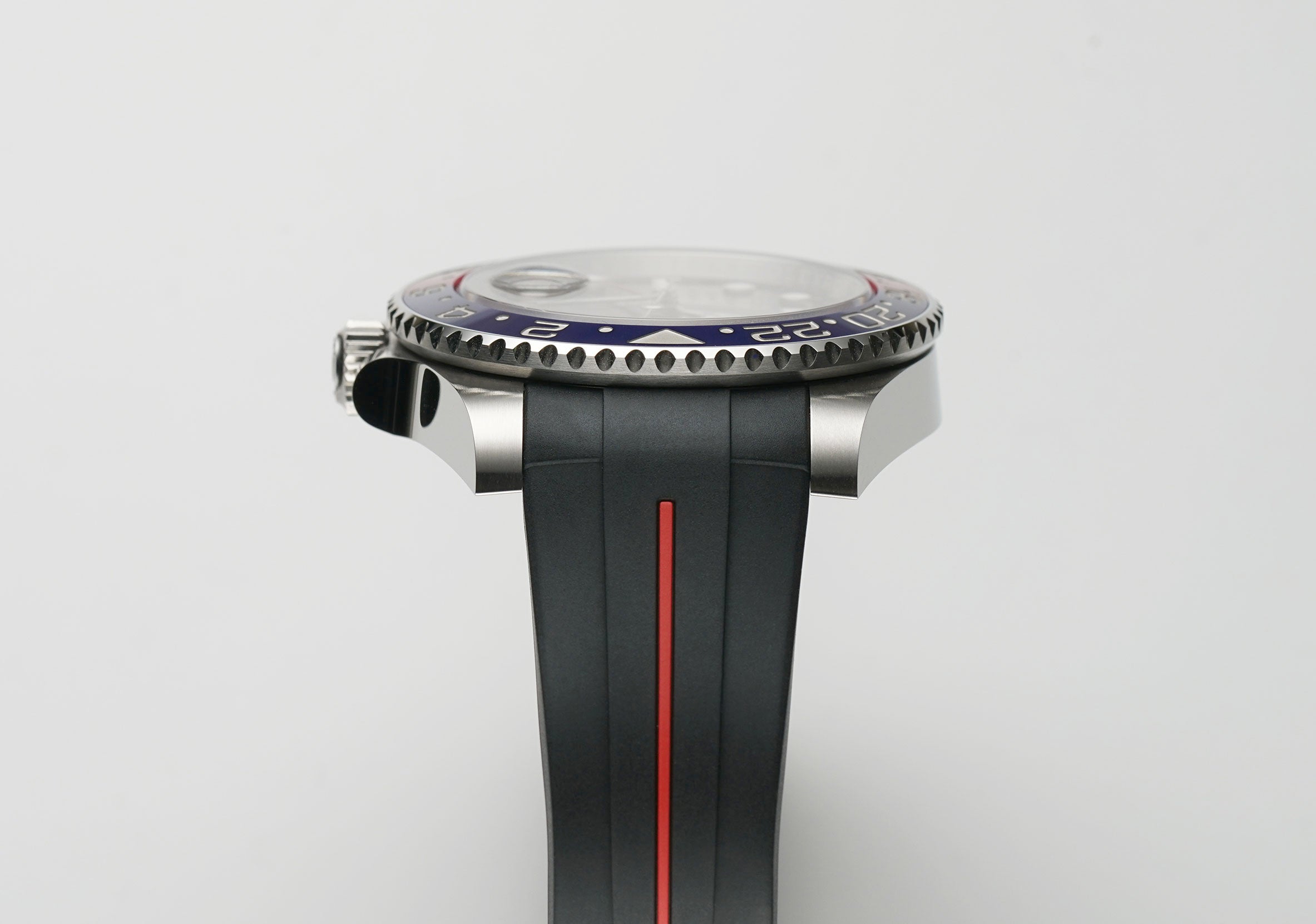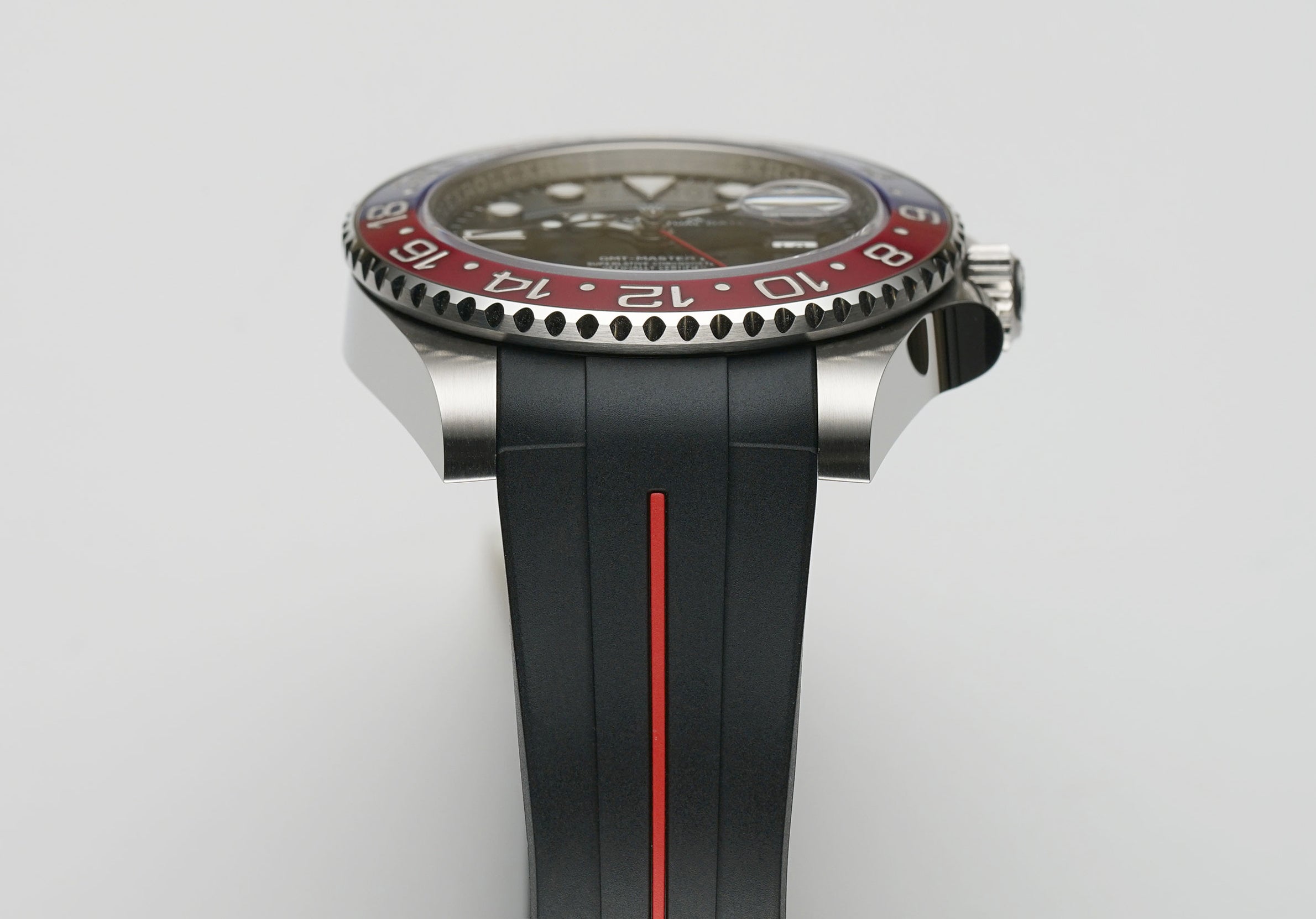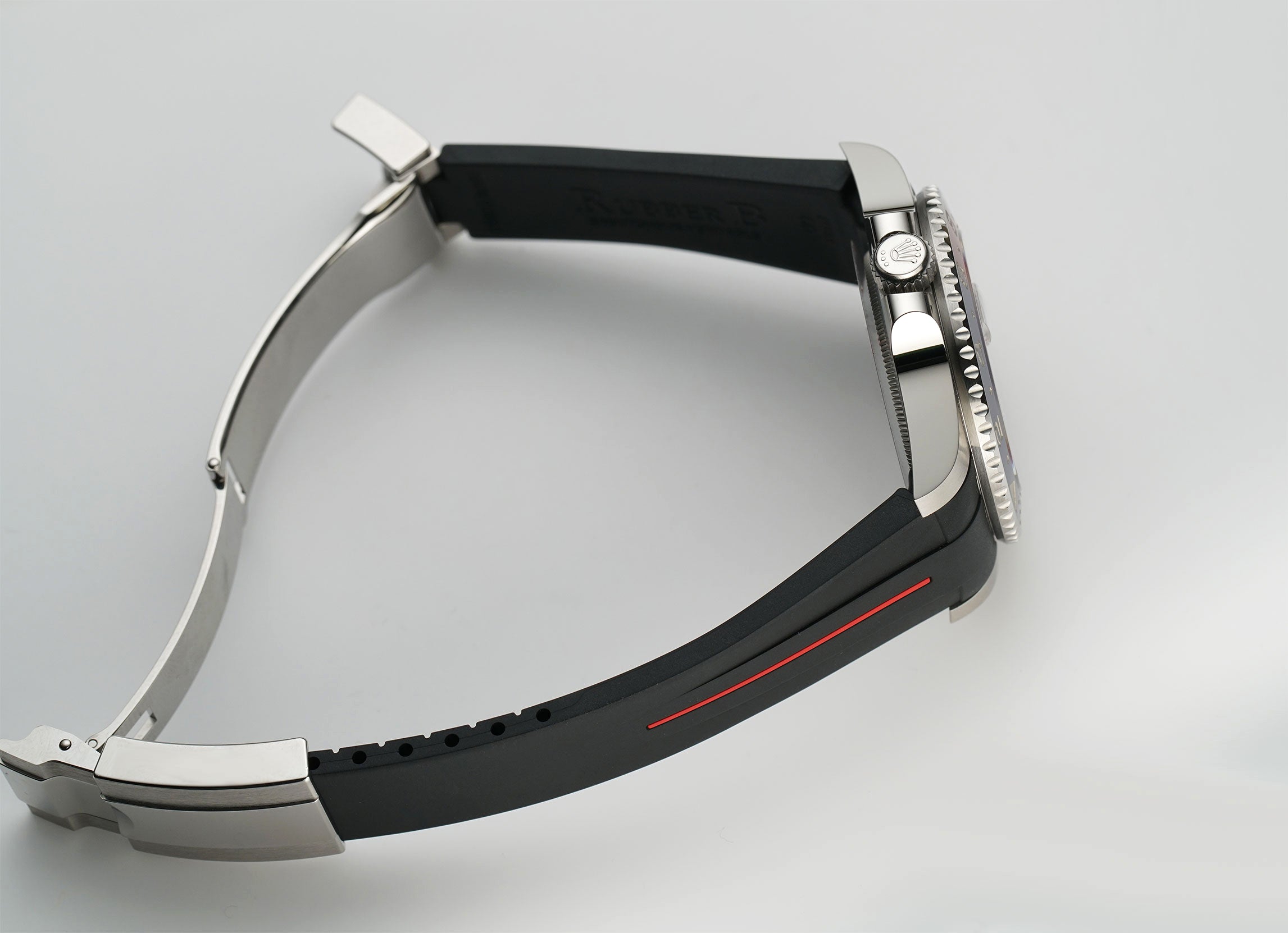 Also included with the watch is an unworn RubberB (Swiss-made vulcanized rubber) strap this is mostly black with a red stripe down the middle. It is also compatible with the original Rolex clasp.
