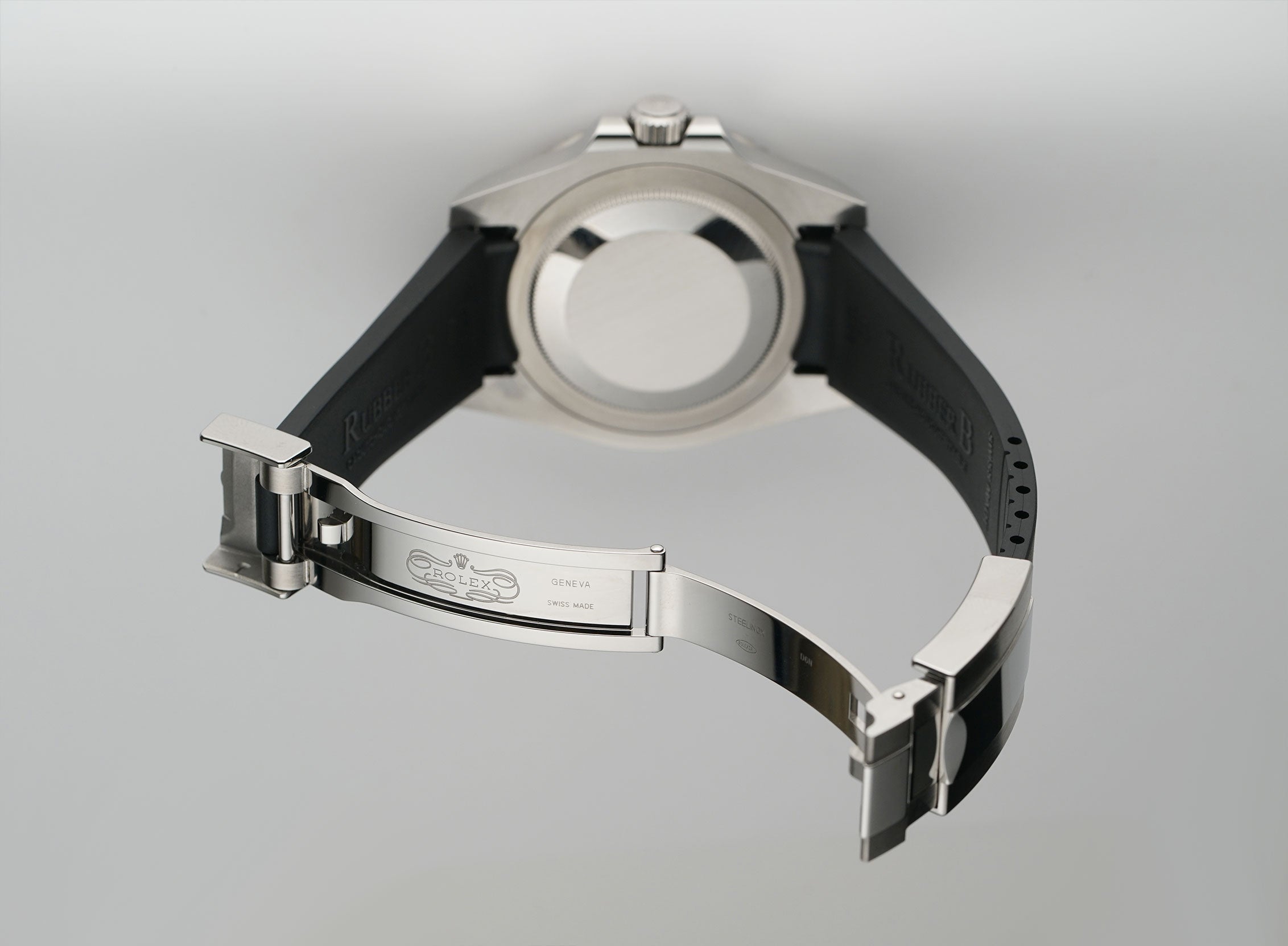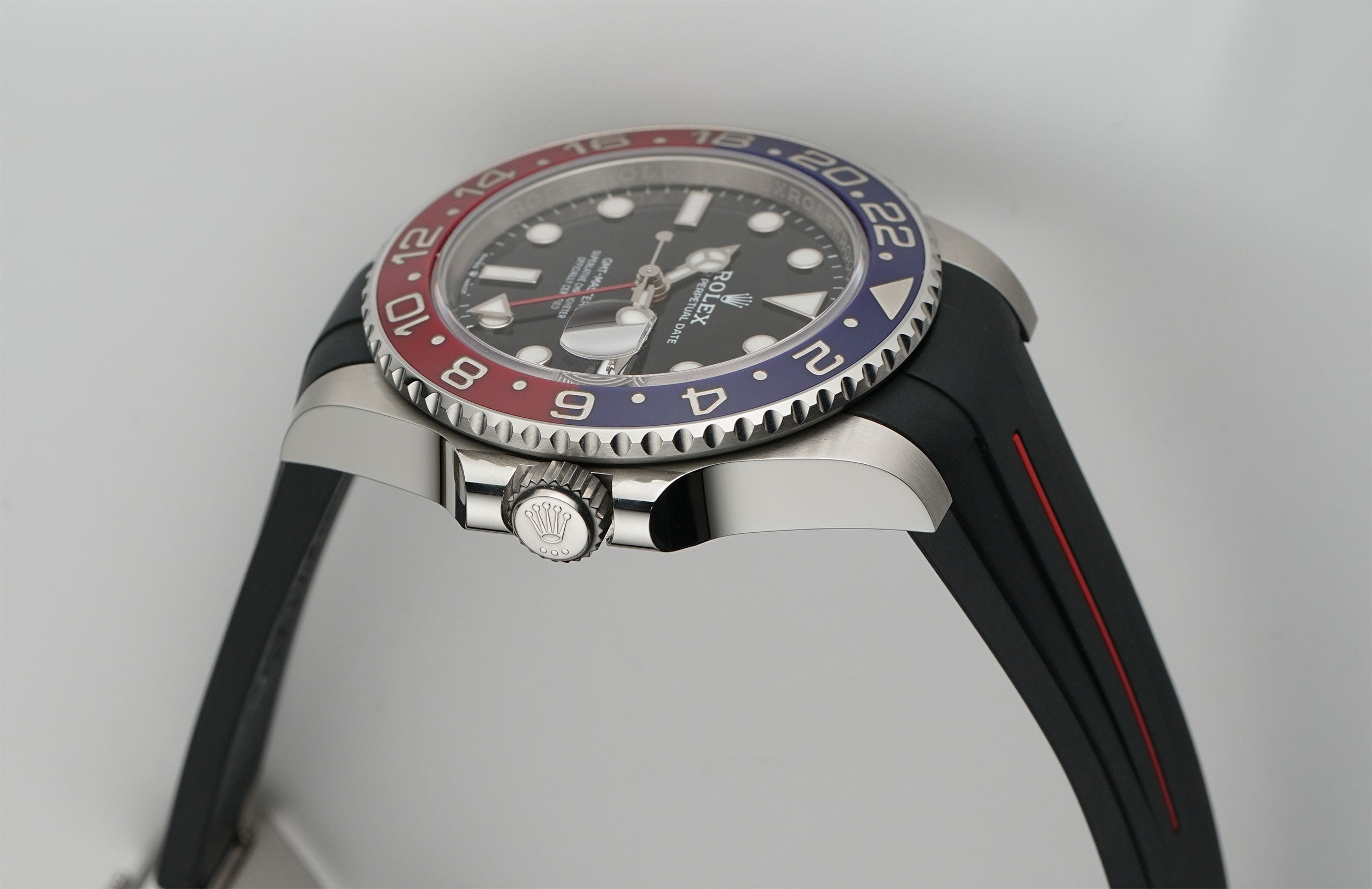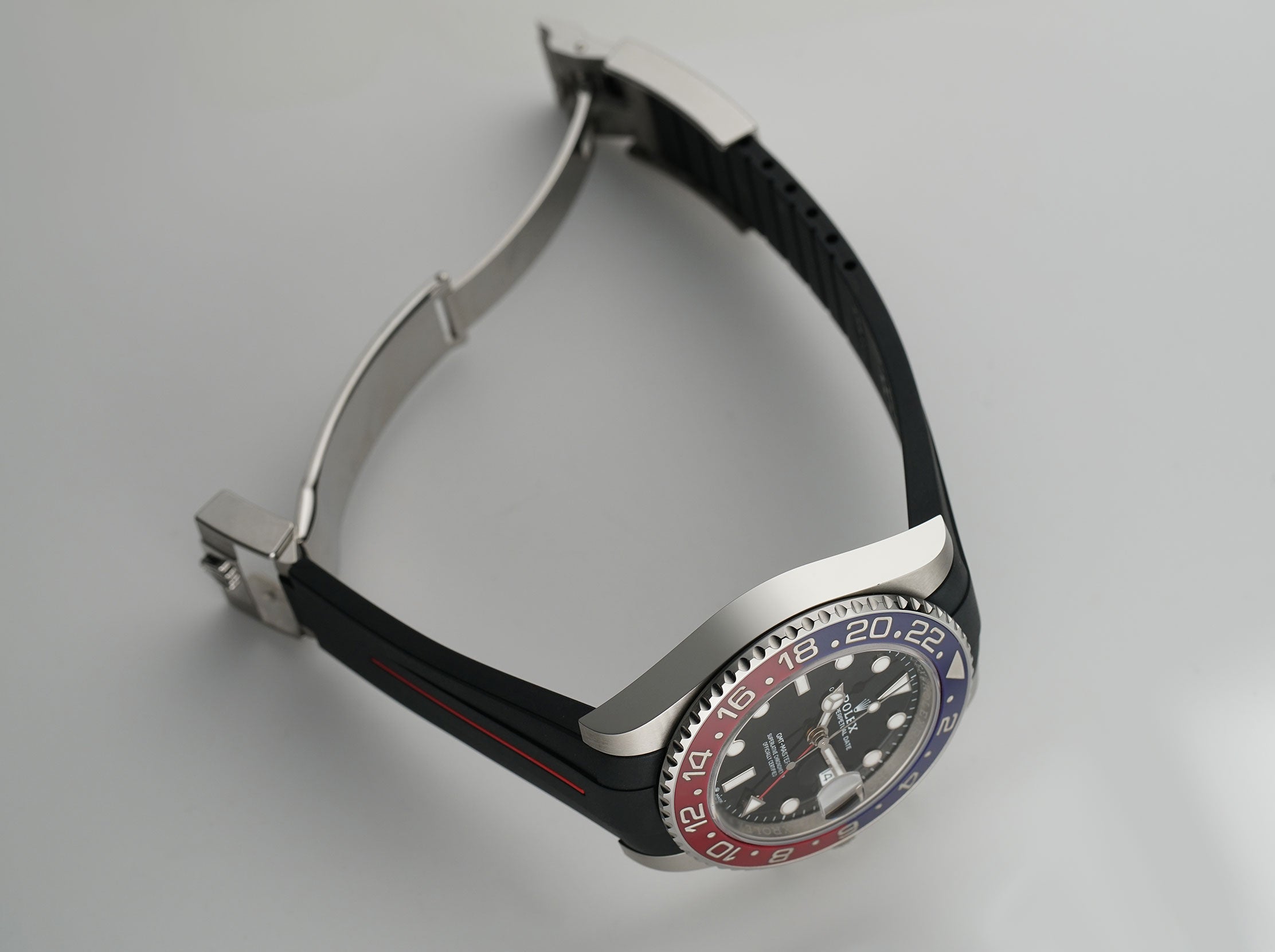 Also included with the watch is an unworn RubberB (Swiss-made vulcanized rubber) strap this is mostly black with a red stripe down the middle. It is also compatible with the original Rolex clasp.