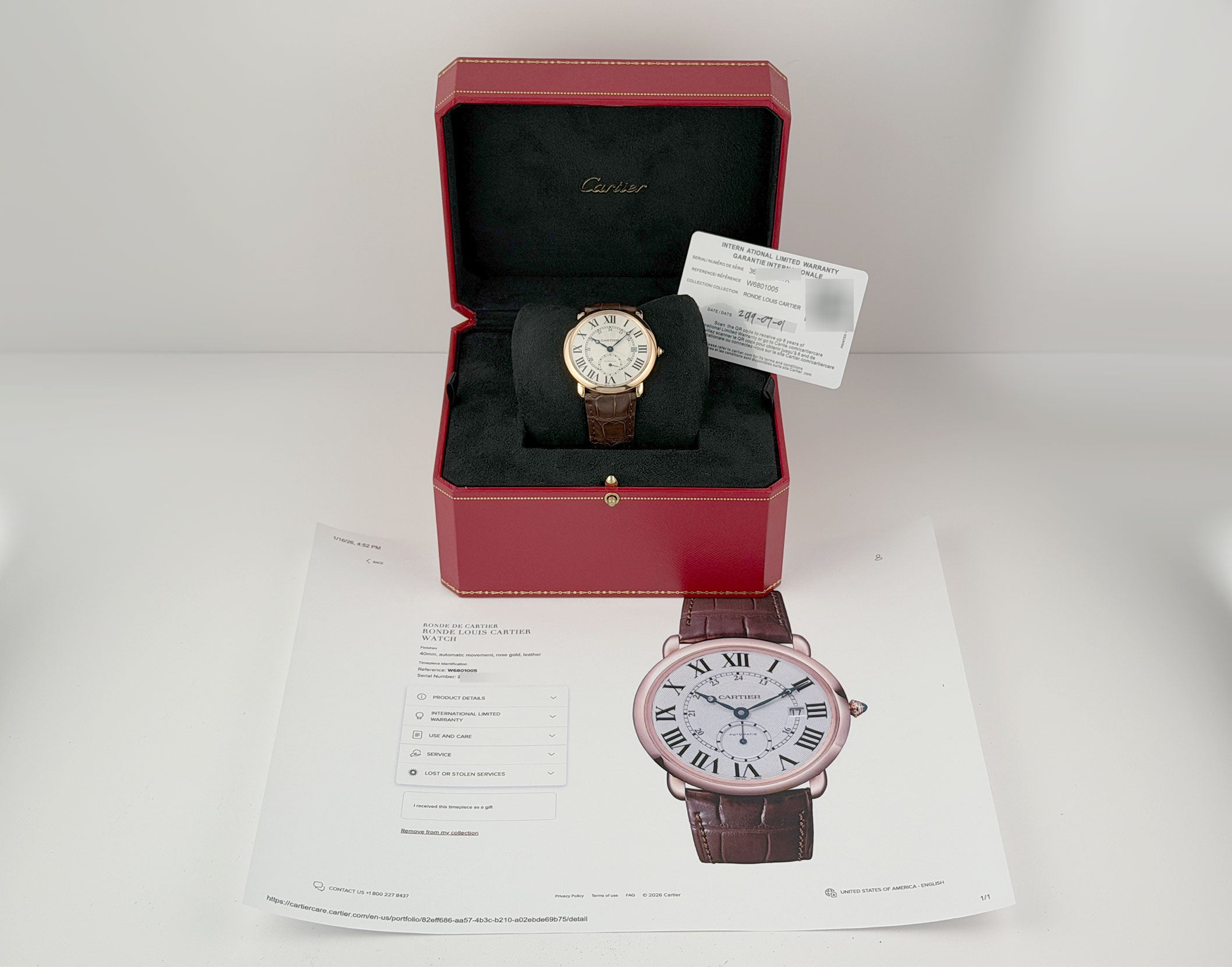 Included with the watch are Cartier box and papers (dated 2019).