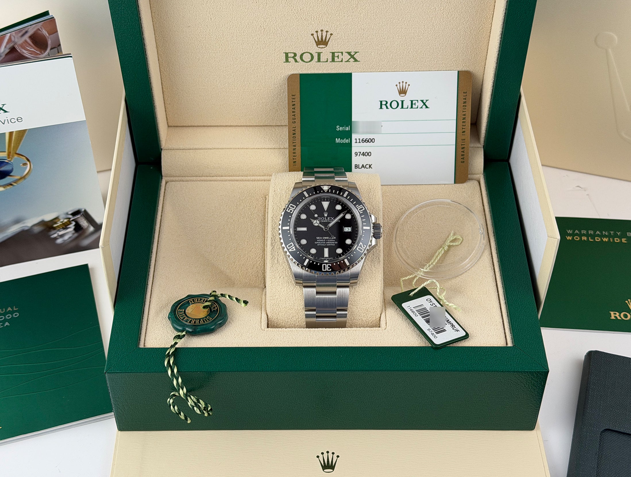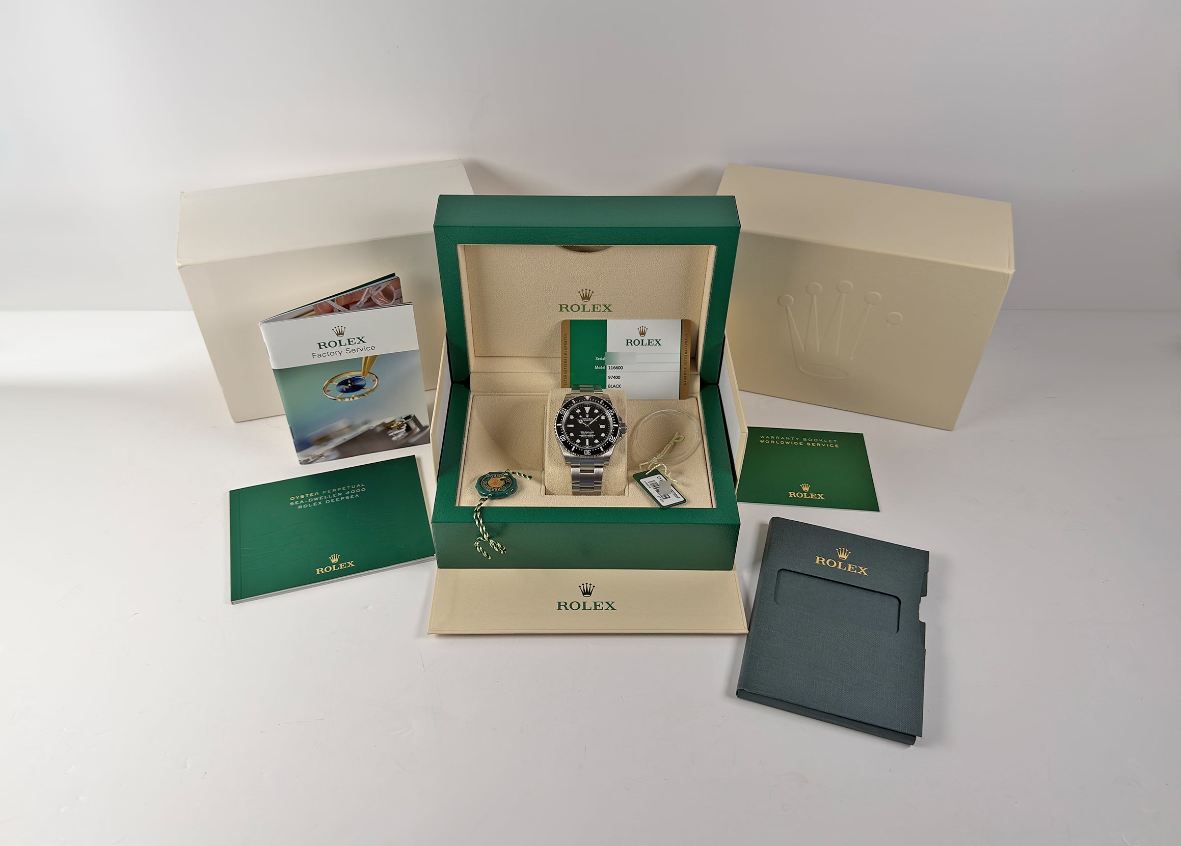 Here we have a Sea-Dweller 4000 (which was only produced for a few years) that is in collector's grade condition. It is in mint condition even though it is unpolished with it's original factory finish. There is also a factory Rolex sticker on the diver's extension as well as the case back. It comes with the full set from top to bottom, please see pictures. Pictures are part of the description so please refer to the pictures in determining the condition, pictures are of the exact watch being offered.