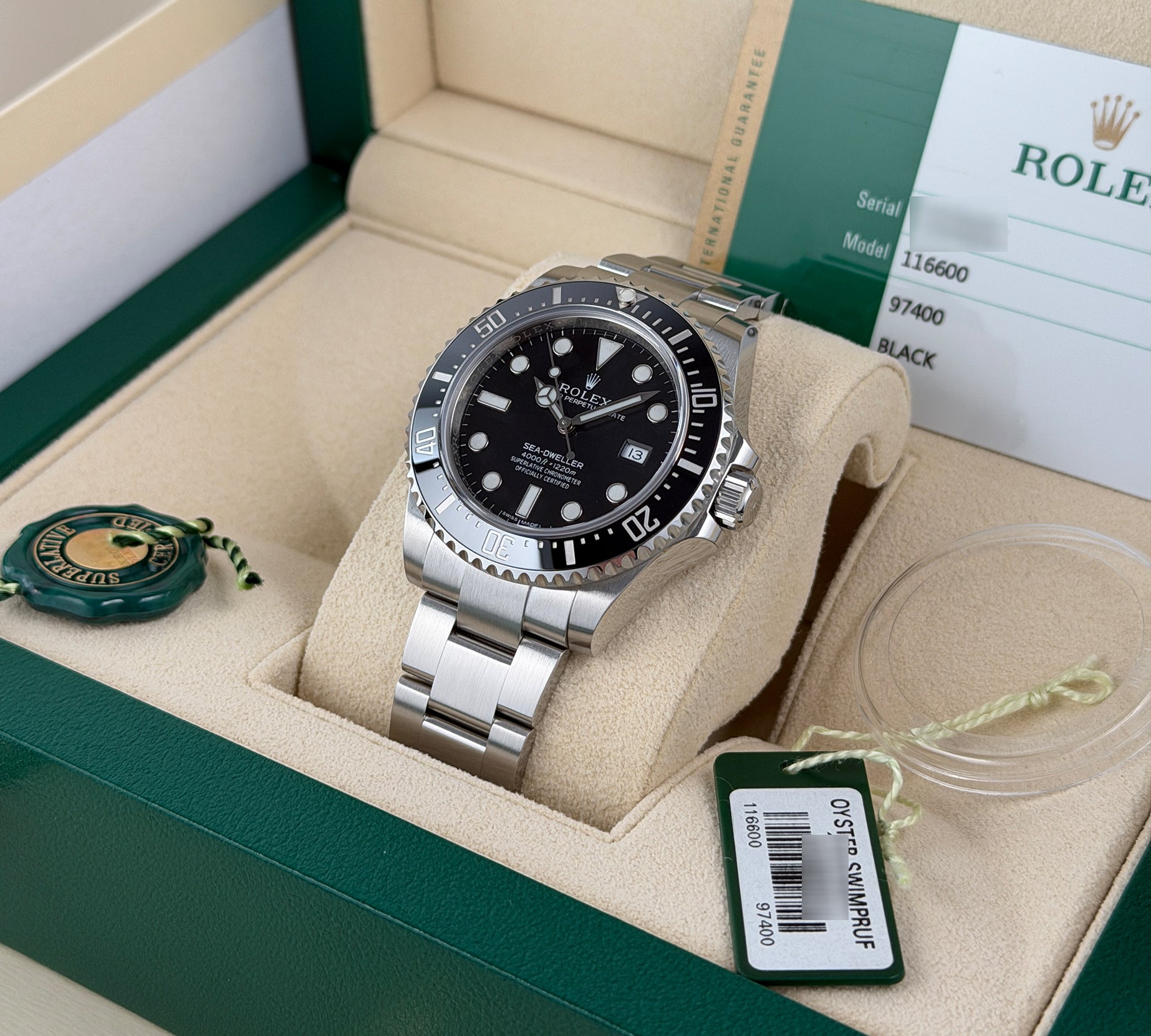 What makes this model special is that it is a blend of the tradition and modernization. It is the only Sea-Dweller with a 40mm case and ceramic bezel. It also features a matte maxi dial which separates it from Sea-Dwellers that followed.