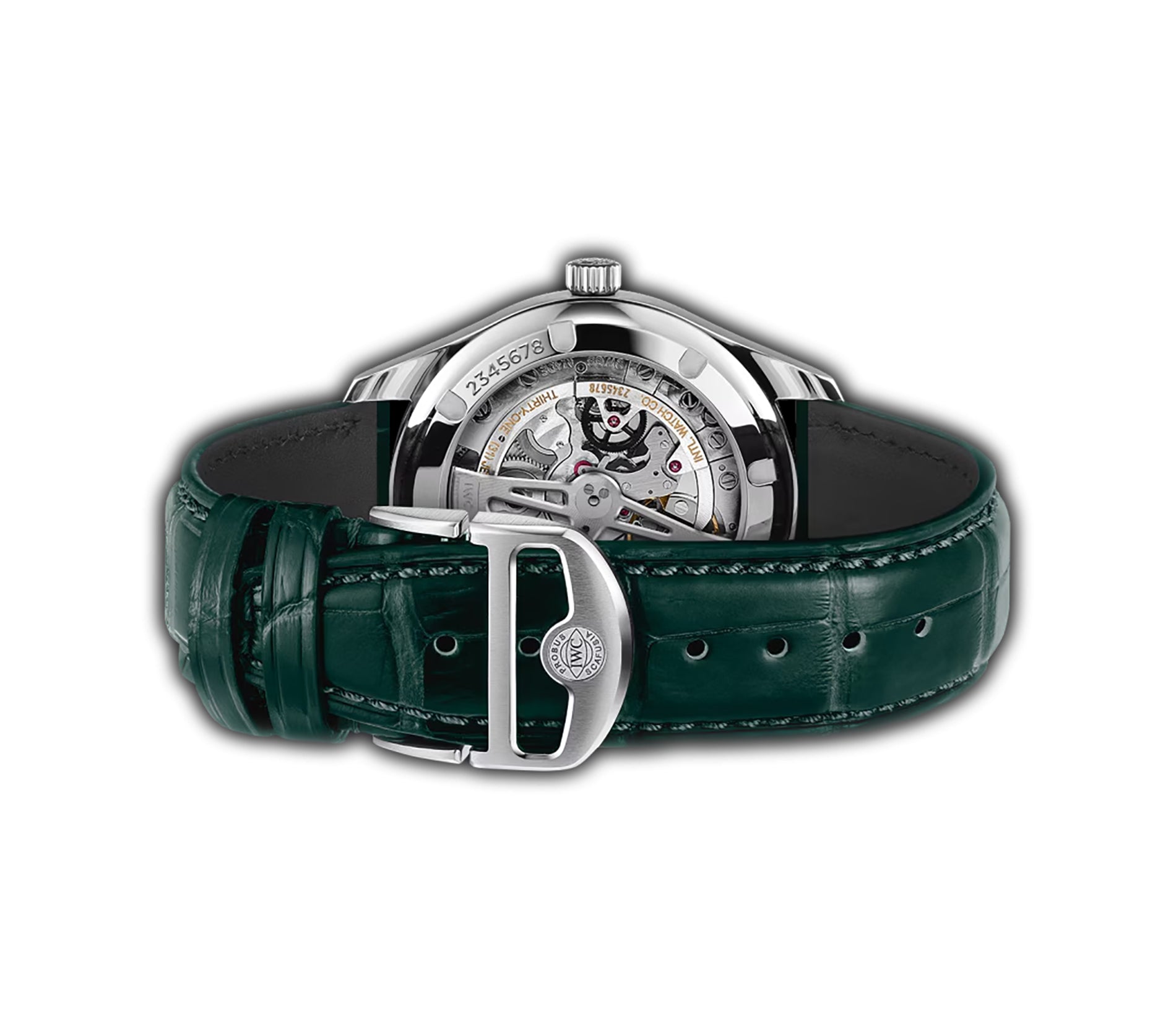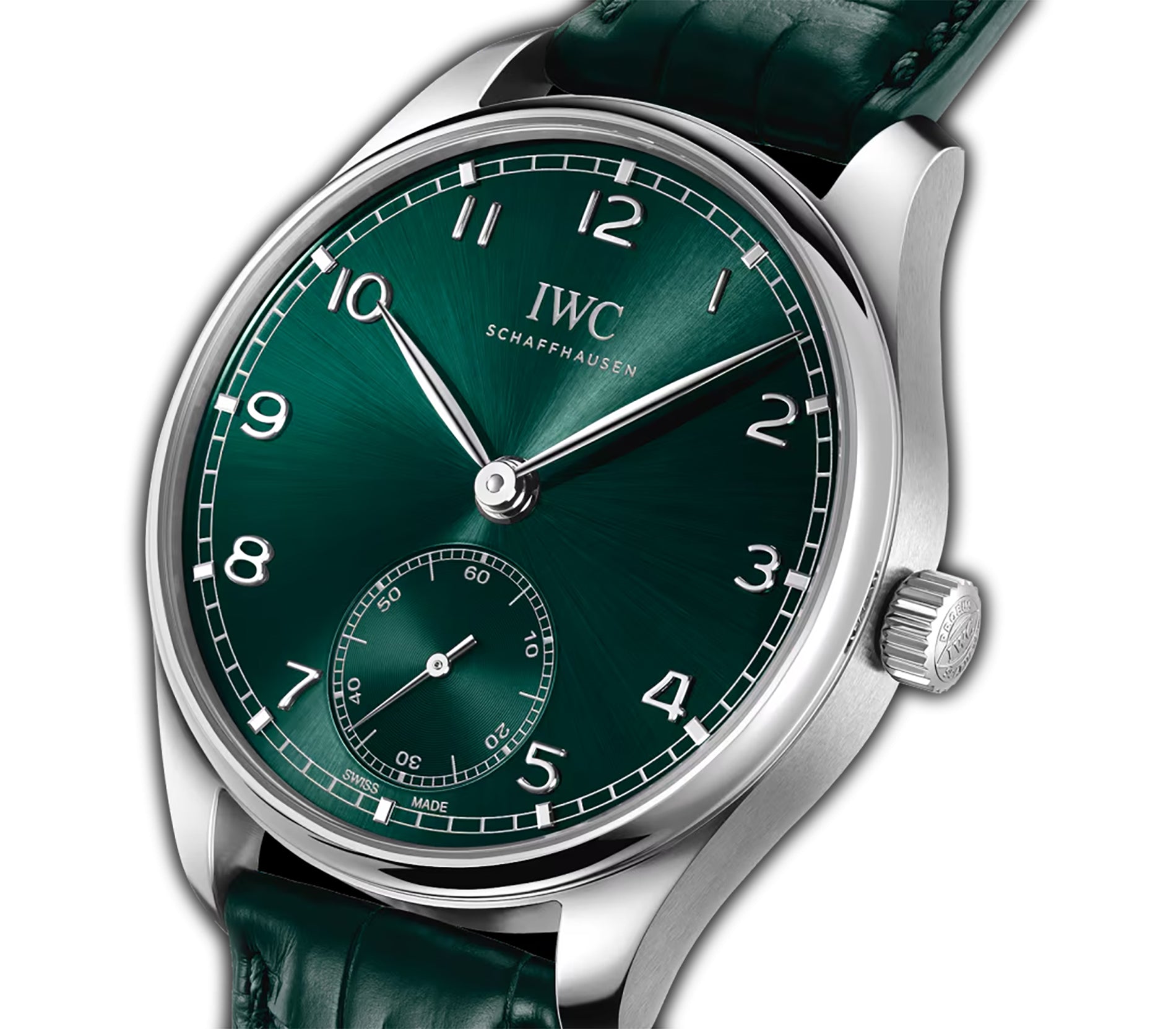Functions are shown on a green dial with steel hands and hour markers. These functions include hours, minutes, and sub-seconds.