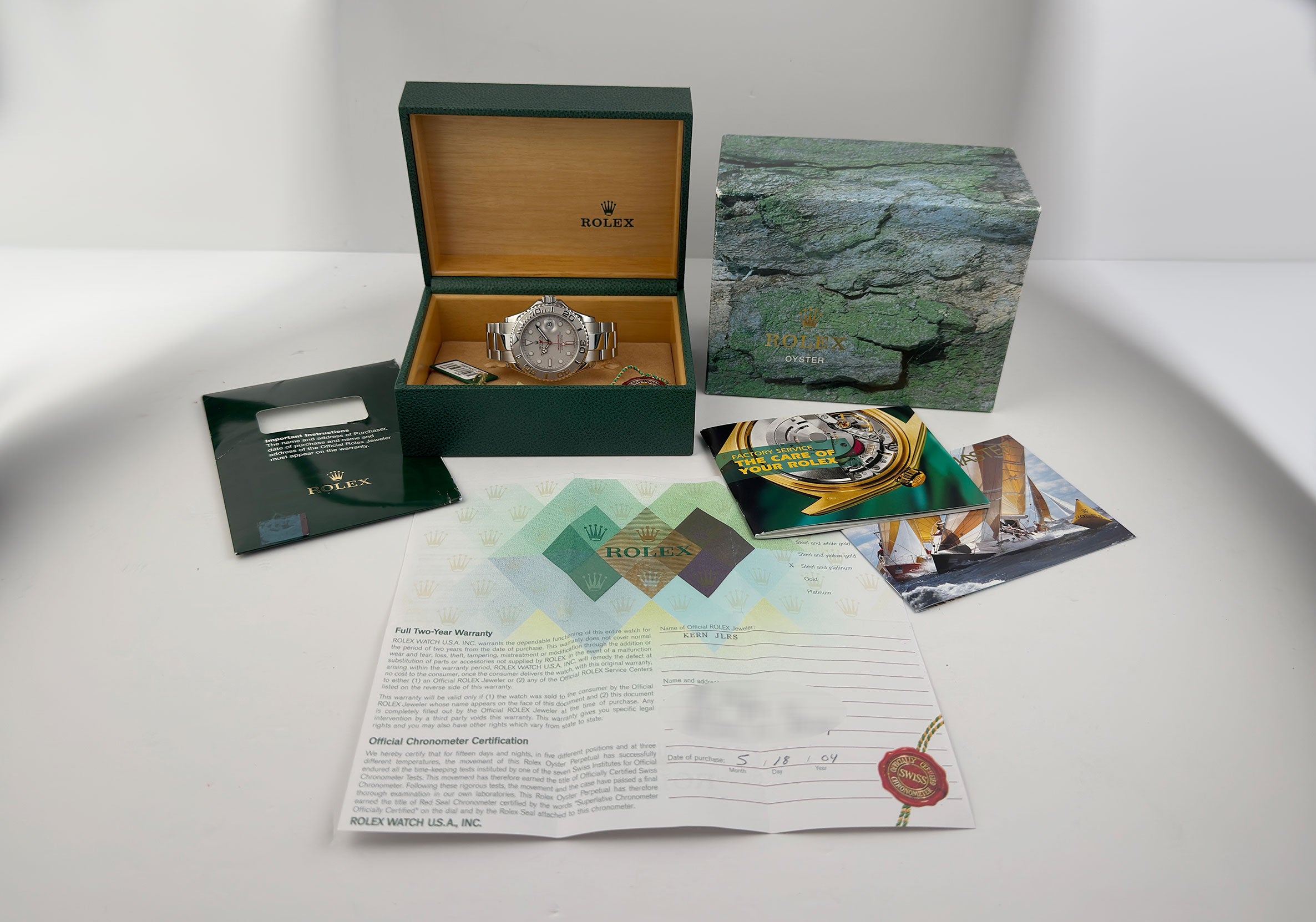 Included with the watch are Rolex box and papers, dated 2004.