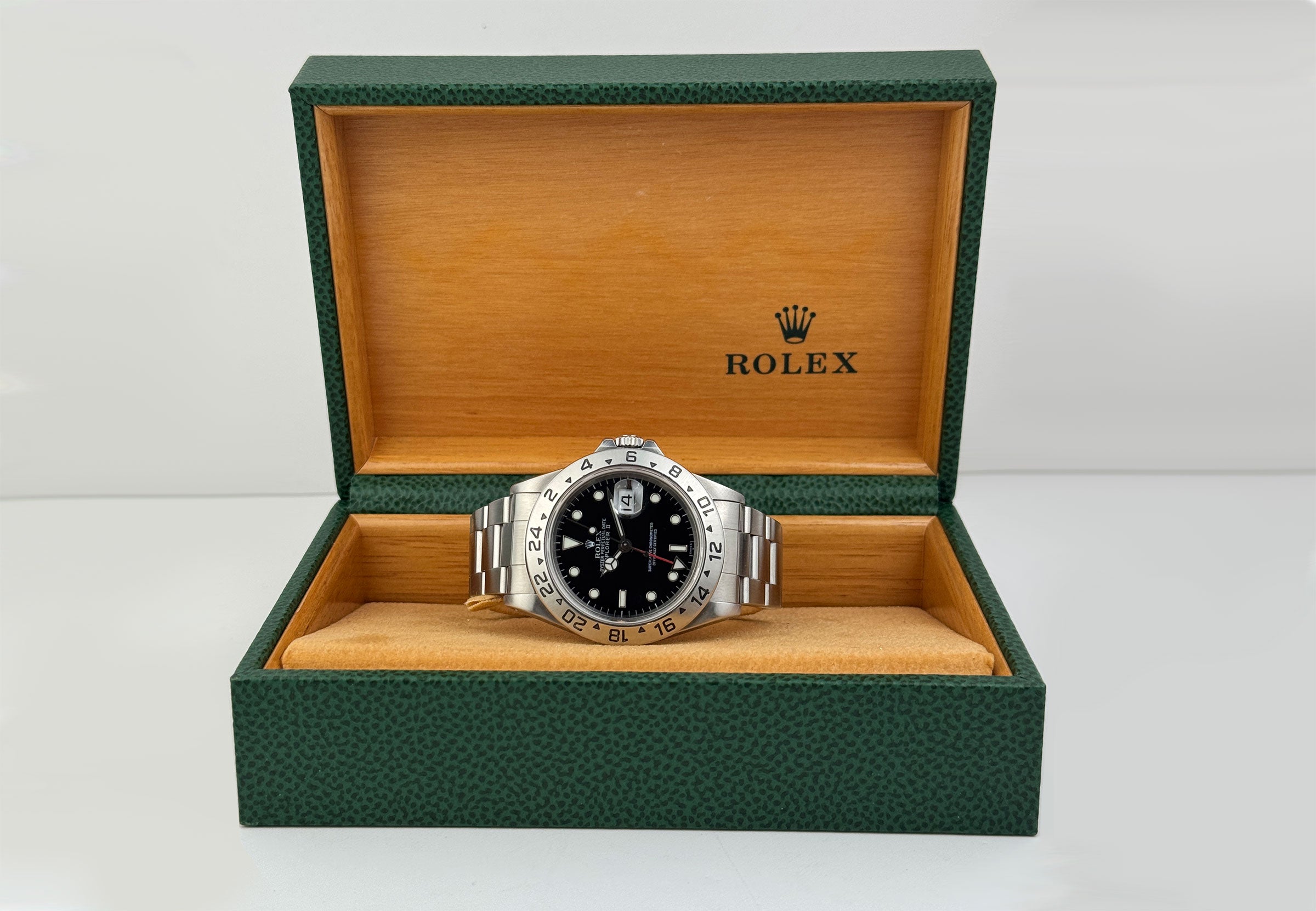 This Explorer II 16570 is in overall excellent shape for a previously enjoyed piece, especially one from 1999. The case does have areas of mirror-like finish which are prone to hairlines (marks visible when with high resolution cameras or if angled at certain lighting). Pictures are part of the description so please refer to the pictures in determining the condition, pictures are of the exact watch being offered.