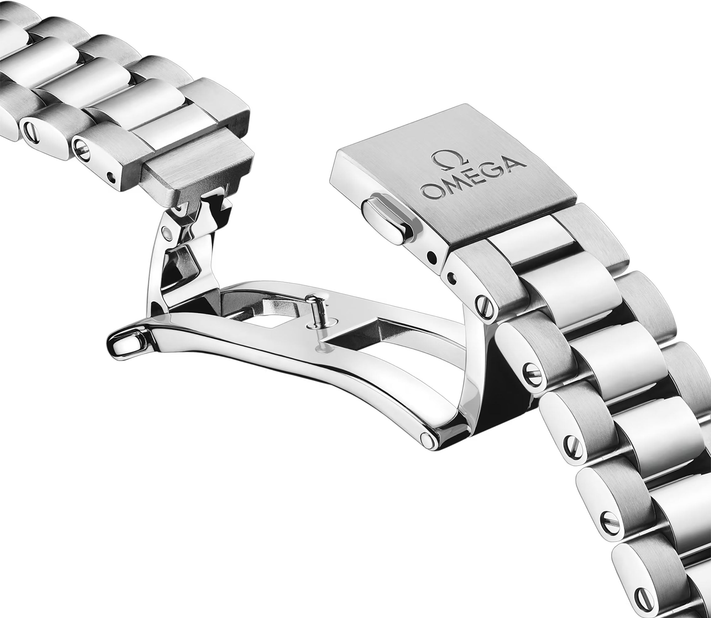 The case is made of a mirror finish stainless steel including the crown. Mounted atop the case is a mirror finish stainless steel bezel. Paired with the watch is a stainless steel bracelet with mirror finish center links and satin finish edge links.