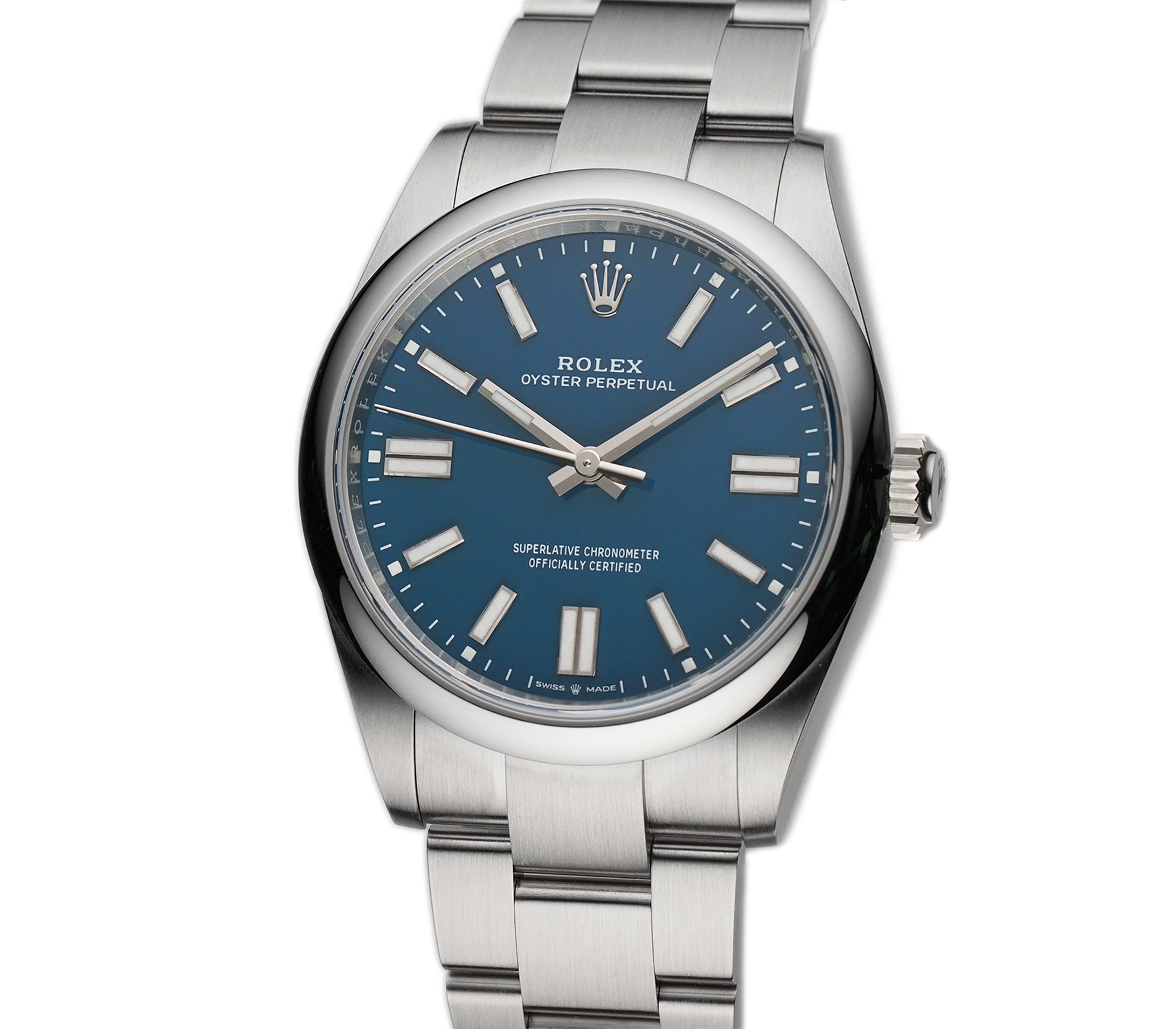 Time is displayed on the 2025 new release med blue dial that is accompanied by luminescent filled index hour markers.