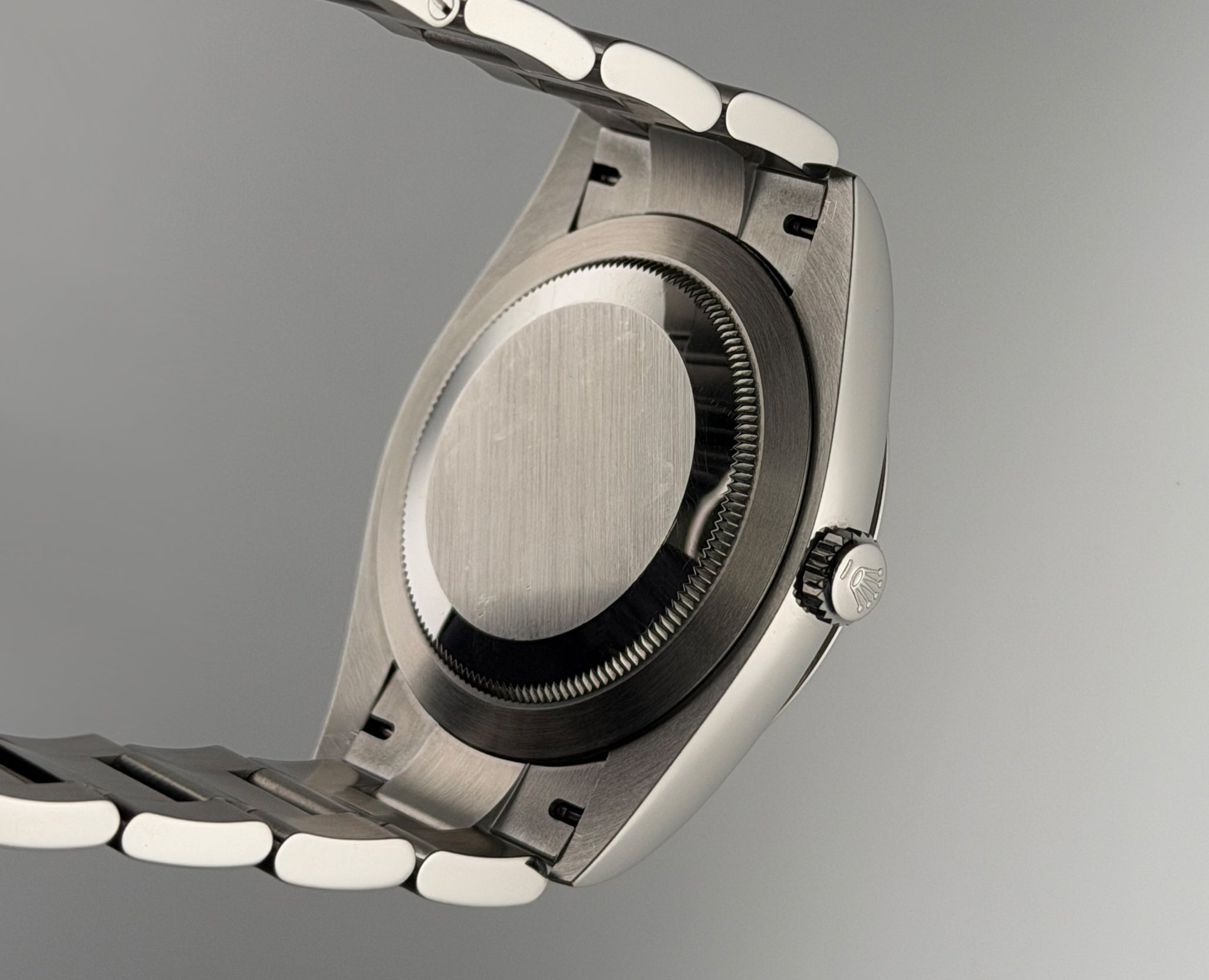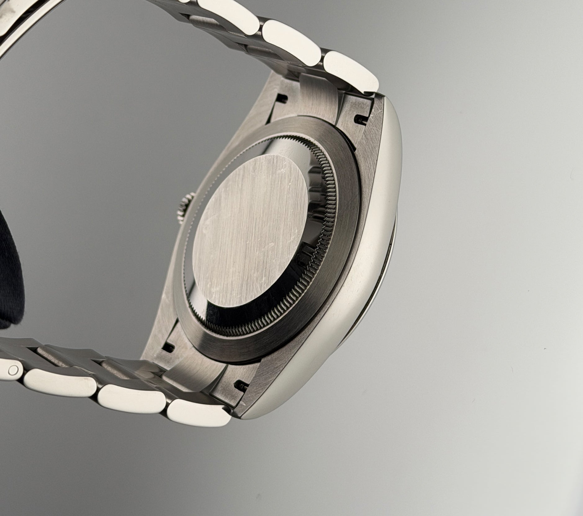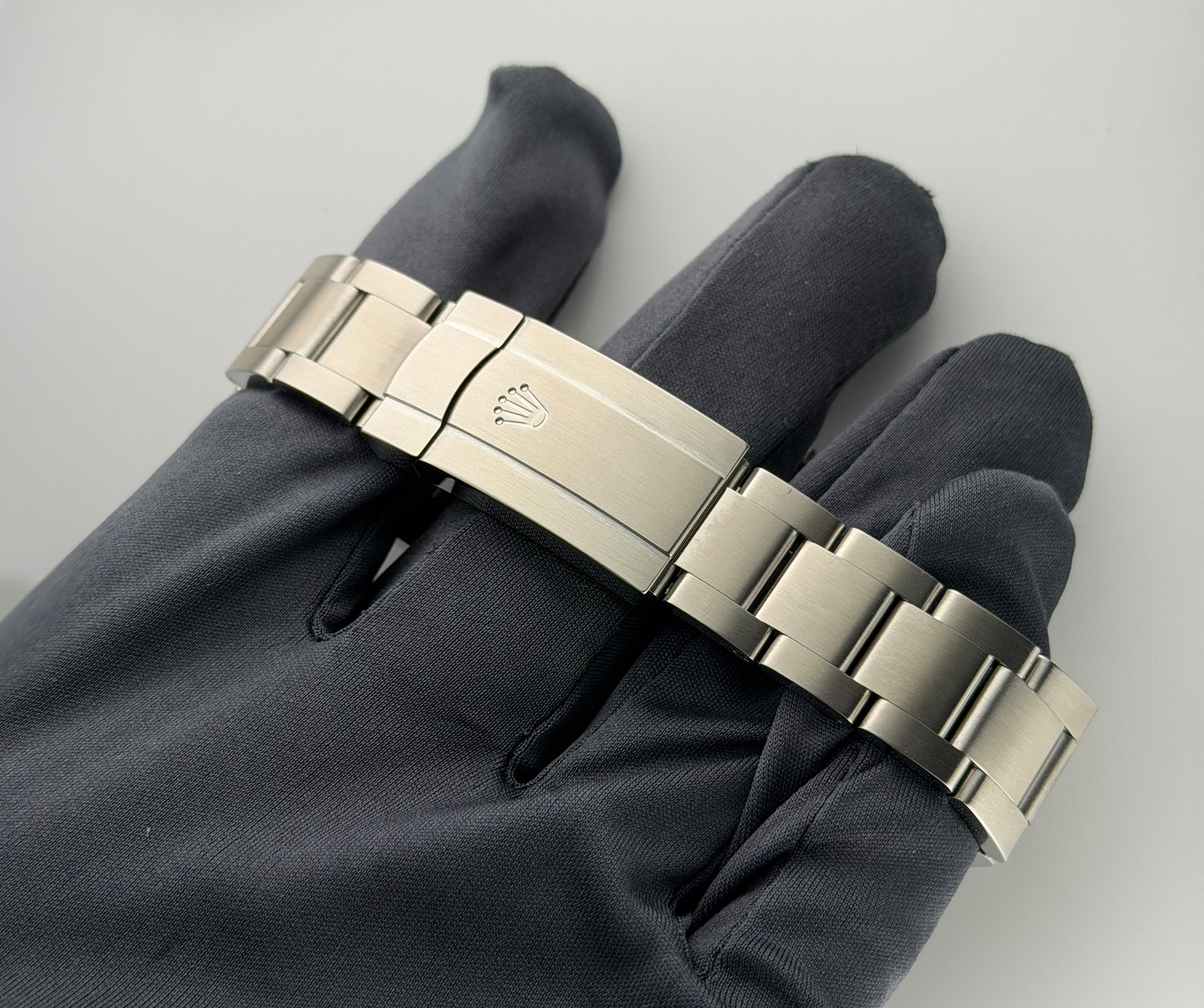 The case is made of stainless steel with satin-finished lugs and mirror-finished sides. Mounted atop the case is a mirror-finished stainless steel bezel. Both the case back and crown are screw down. As for the oyster bracelet, it is stainless steel, mostly satin-finished with the exception of the sides of the links which are mirror-finished (fits up to an approximate 7.25 inch wrist).