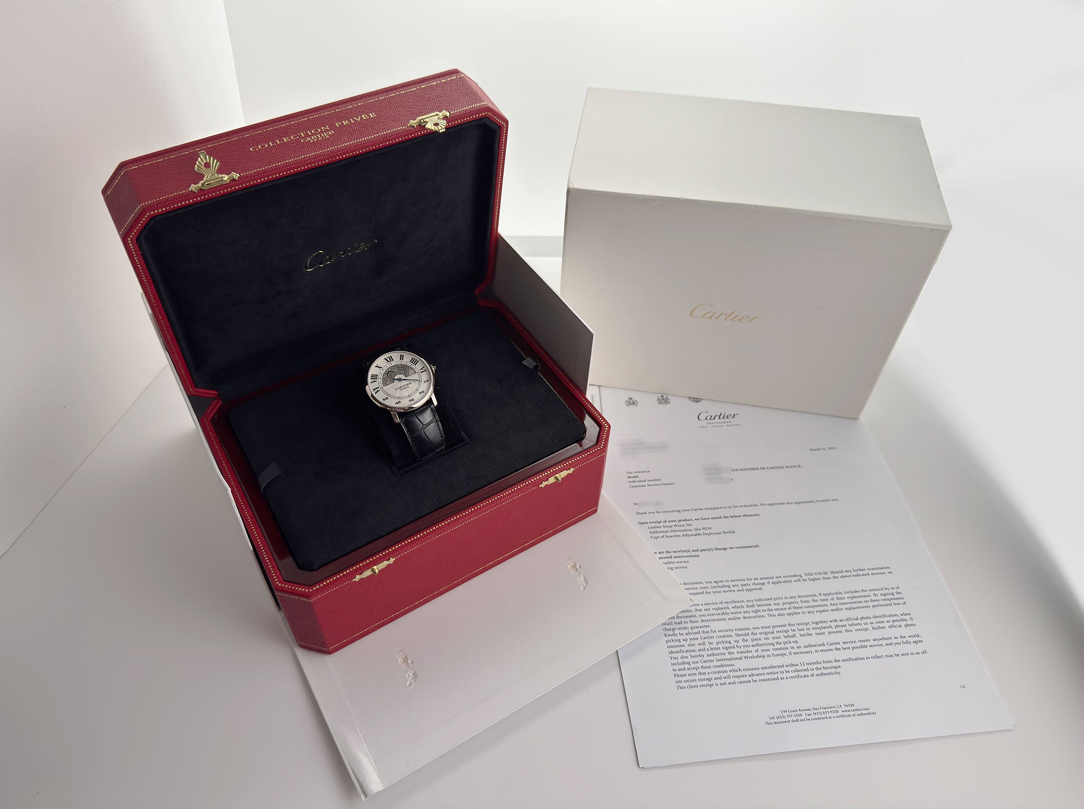 Included with the watch are Cartier box, initial purchase receipt (dated 2007) as well as service records from March of 2021. The original Cartier warranty certificate is not included.