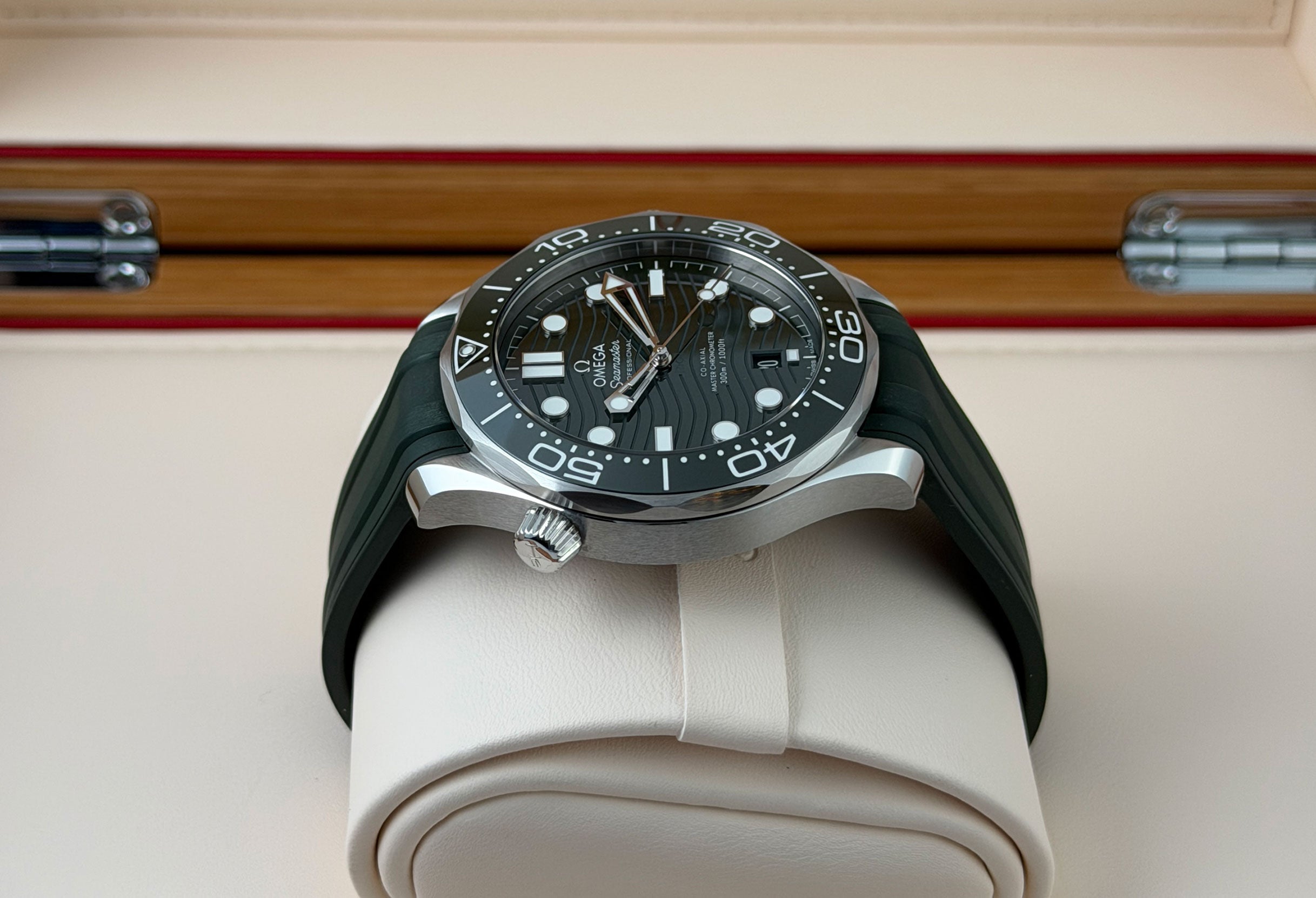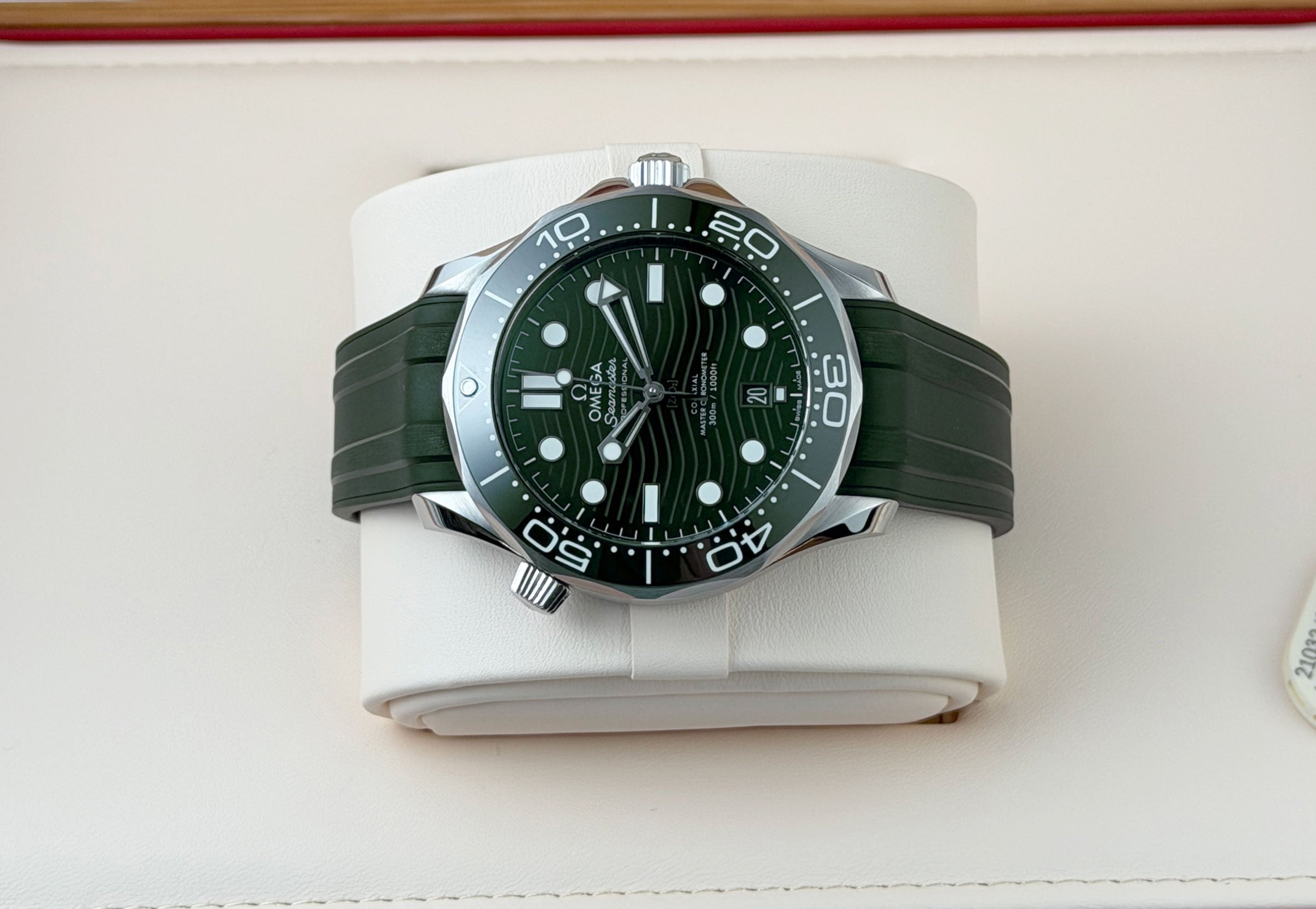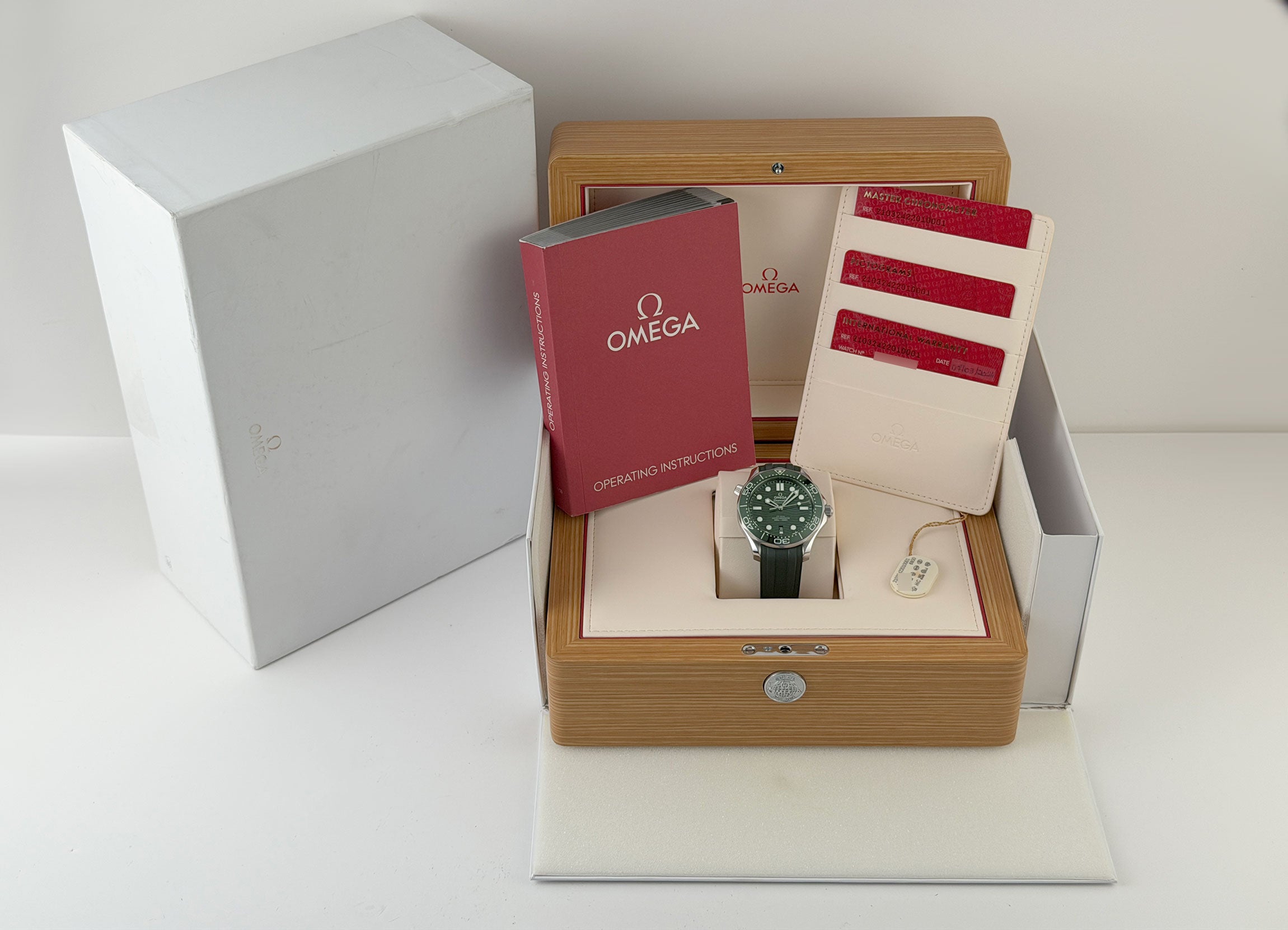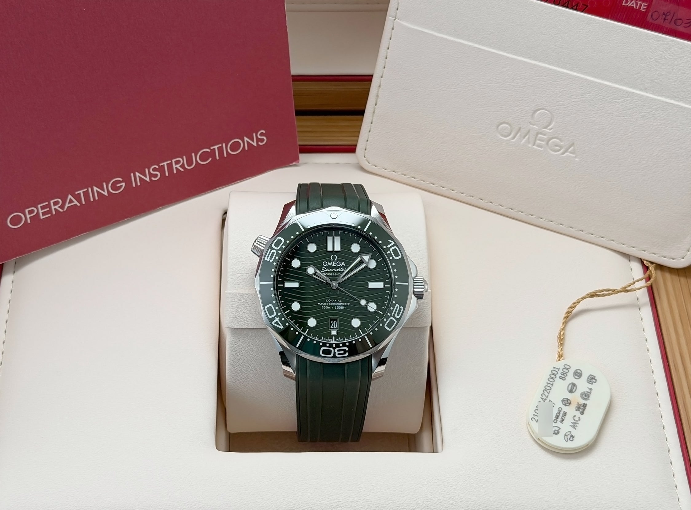 This Omega Seamaster Diver 300M O21032422010001 is in excellent condition for a previously enjoyed watch. The case does have areas of mirror-like finish which are prone to hairlines (marks visible when with high resolution cameras or if angled at certain lighting). Pictures are part of the description so please refer to the pictures in determining the condition, pictures are of the exact watch being offered.