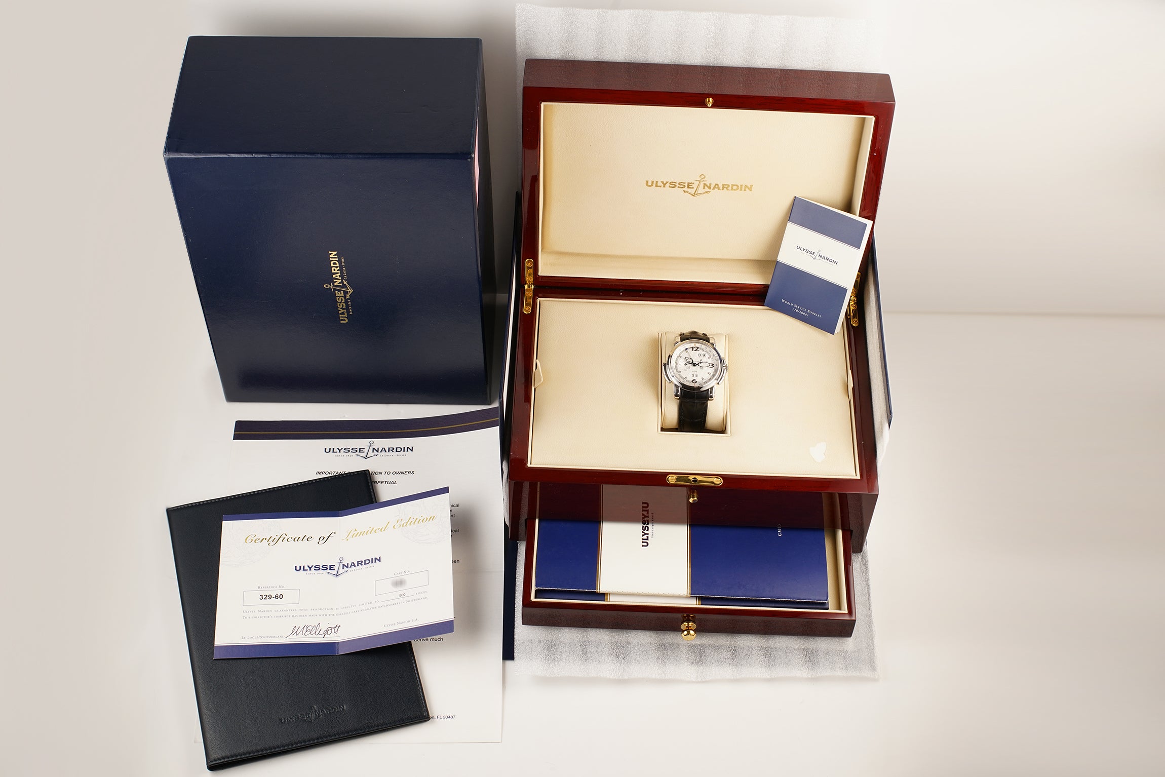 Included with the watch are UN box and papers, initially purchased in 2004. Only 500 examples of this model are in circulation.