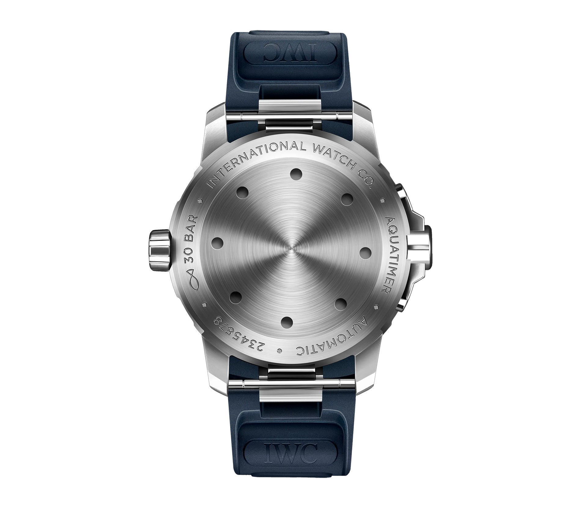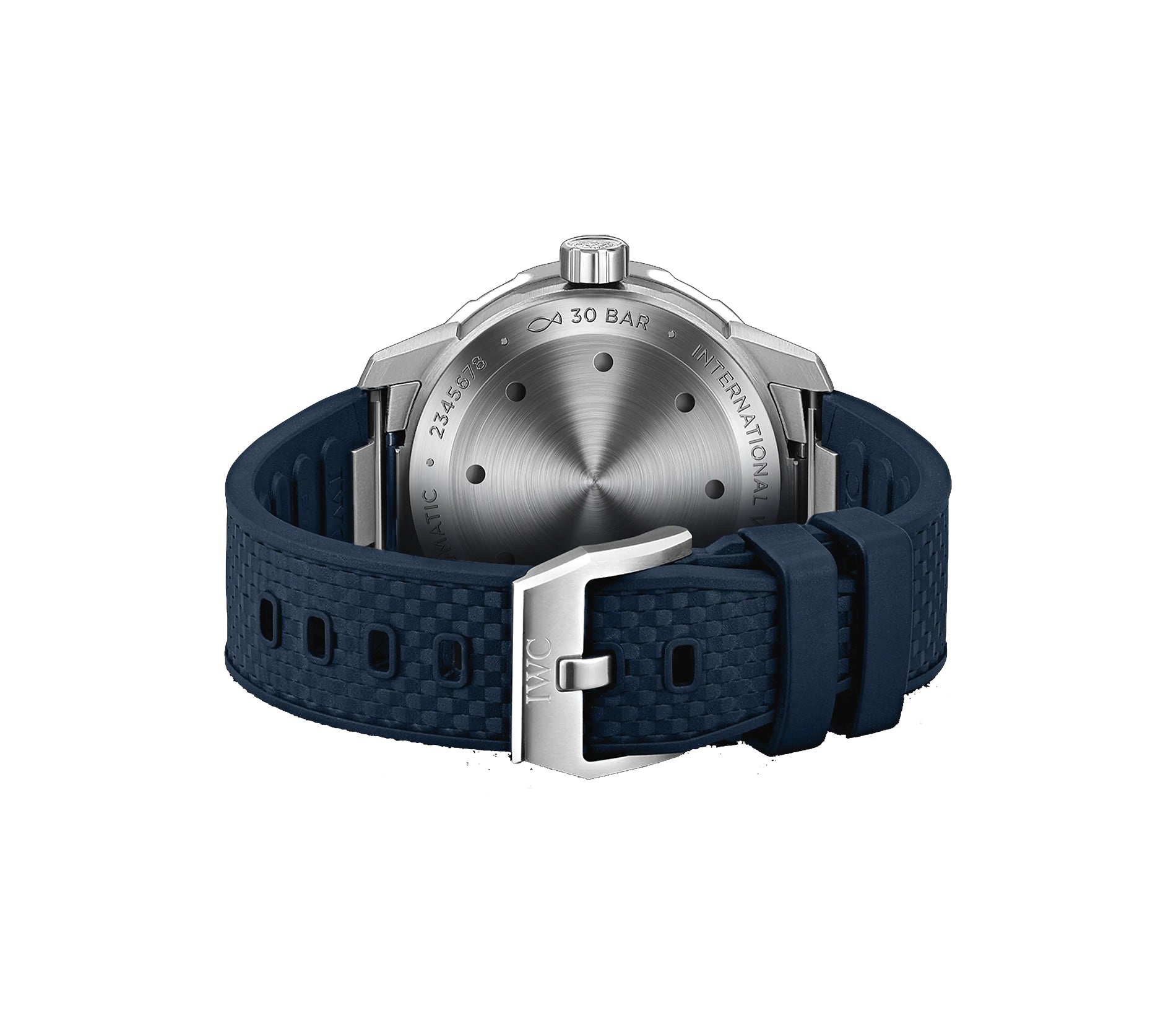 Functions are displayed on a blue dial with white hands and white numeral hour markers. Featured on the dial is seconds, minutes, hours, date.