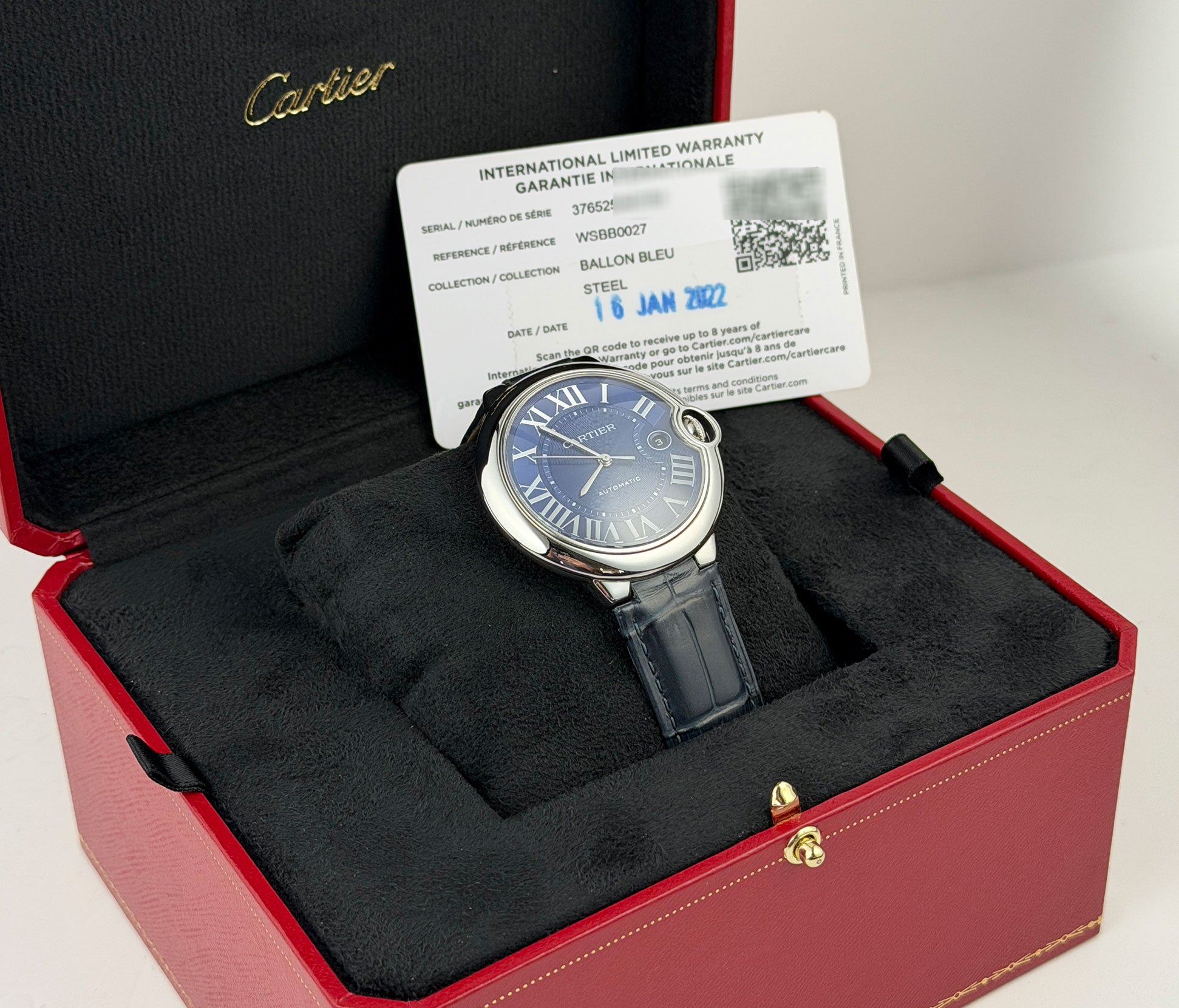 This Cartier Ballon Bleu 3765 is in excellent condition for a previously enjoyed watch. The case does have areas of mirror-like finish which are prone to hairlines (marks visible when with high resolution cameras or if angled at certain lighting). Pictures are part of the description so please refer to the pictures in determining the condition, pictures are of the exact watch being offered.