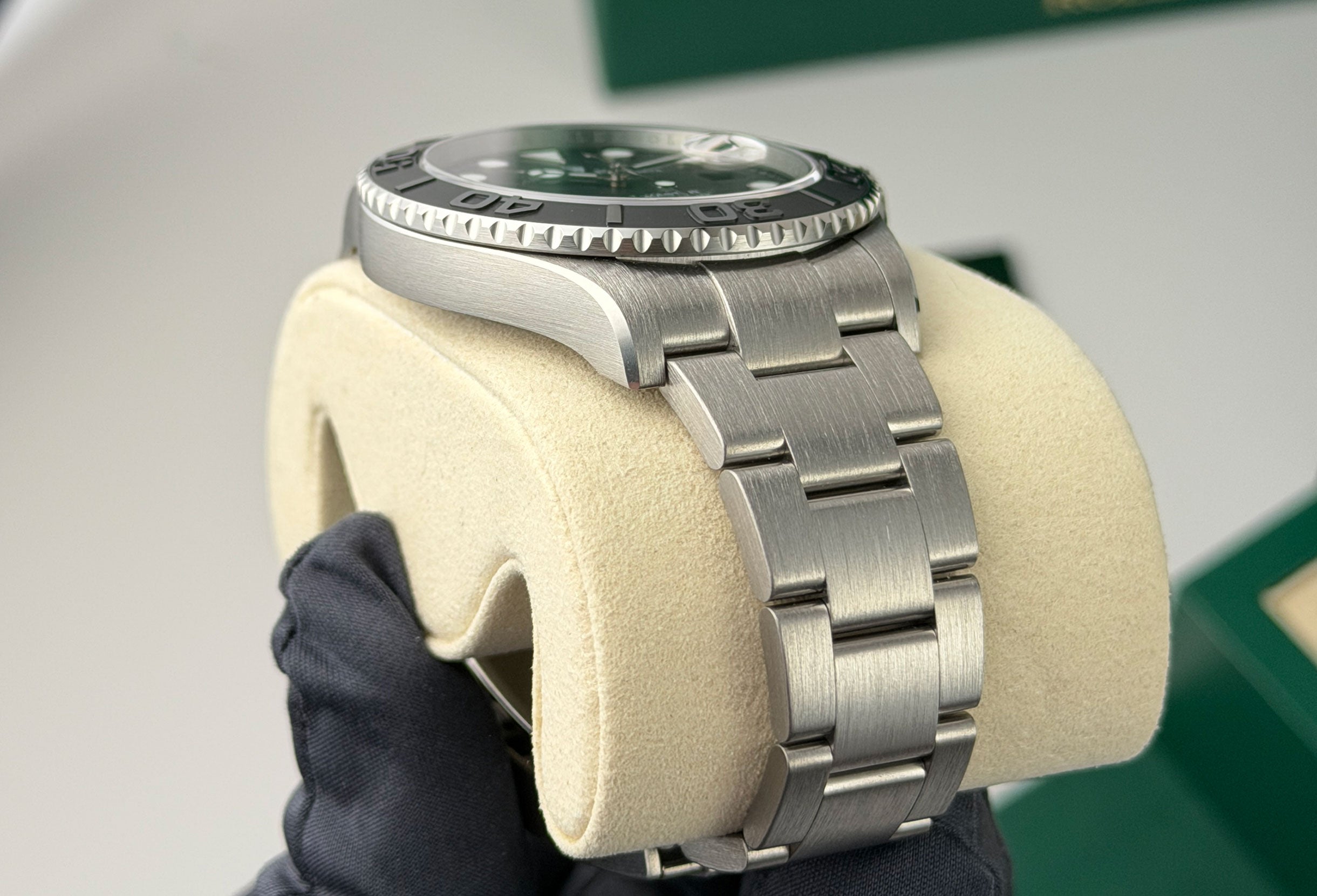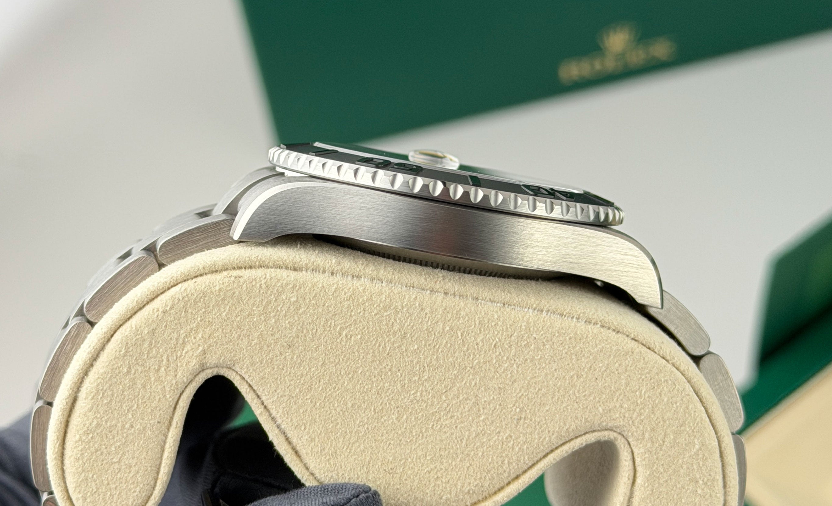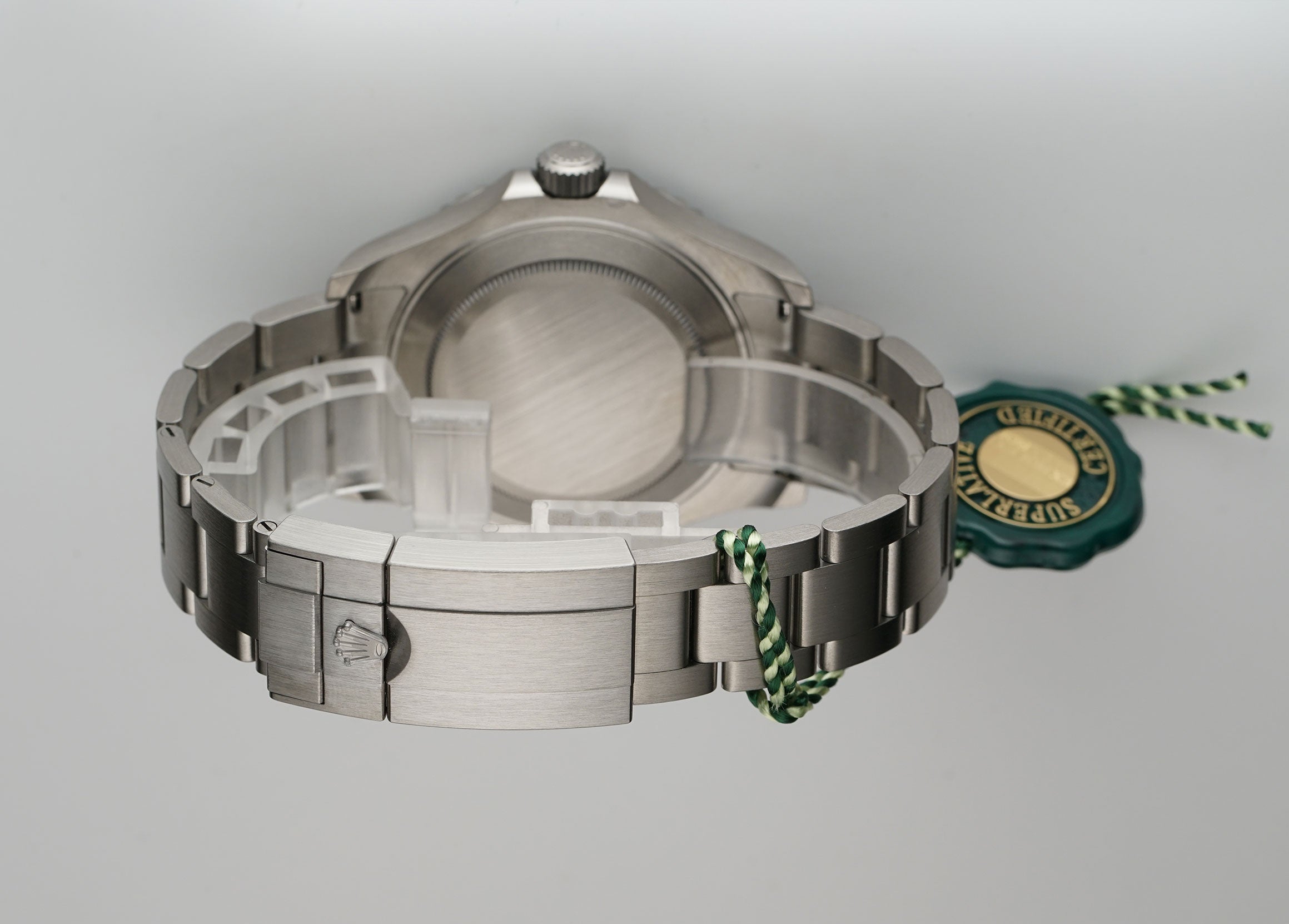 The case is made of titanium, which is all satin-finished with the exception of the bezel which is satin polished. The case is equipped with a bidirectional rotatable ceramic bezel that features a bezel insert that is accompanied by raised 60-minute markers. Both the crown and case back are screwed down into the case. As for the band, it comes mounted on a titanium oyster bracelet, which is all brush finished.