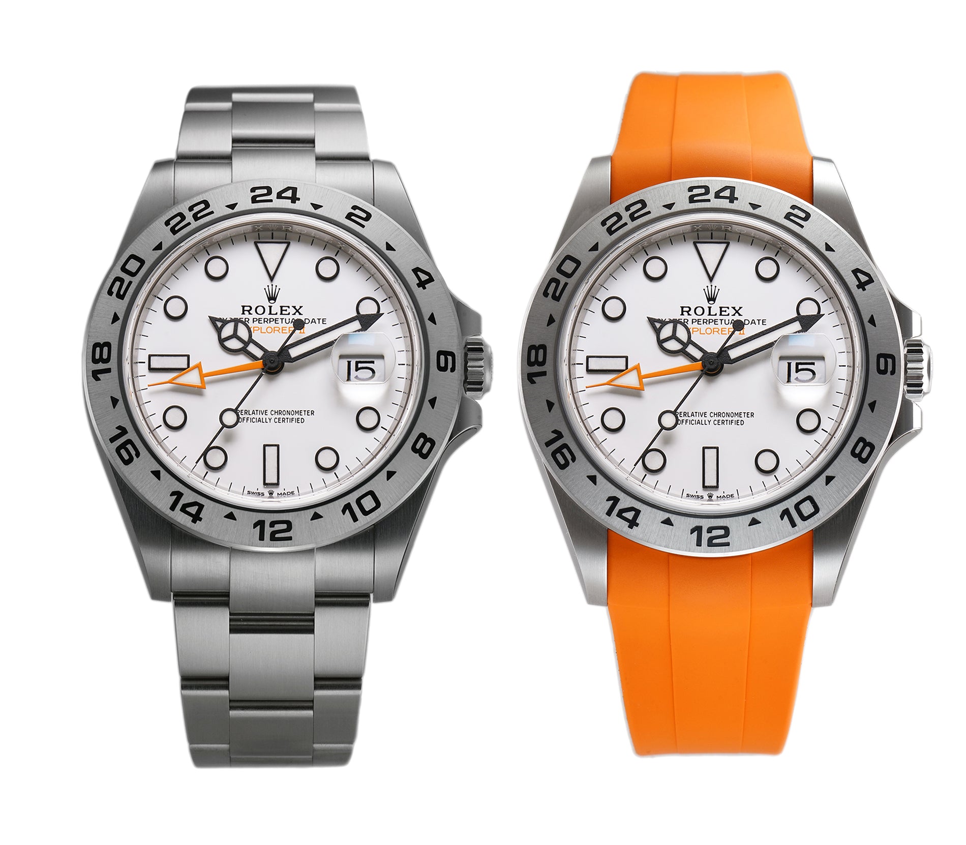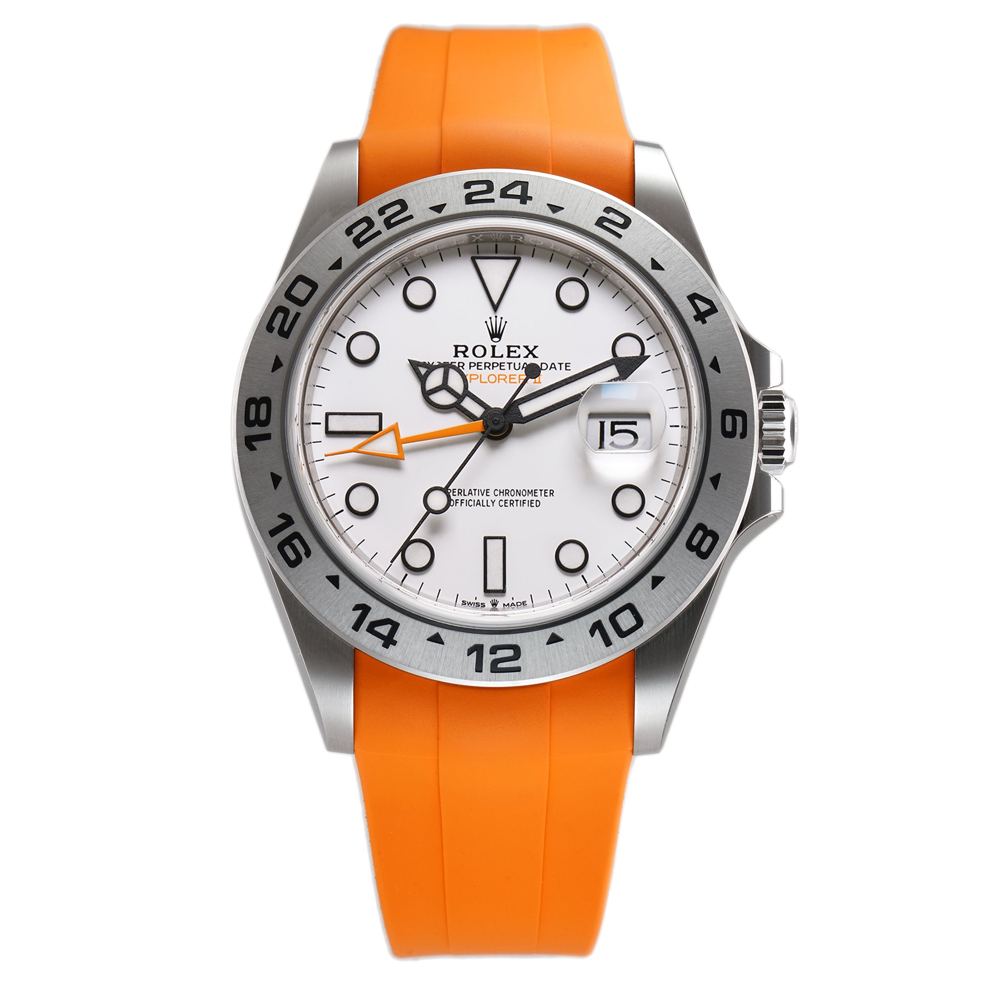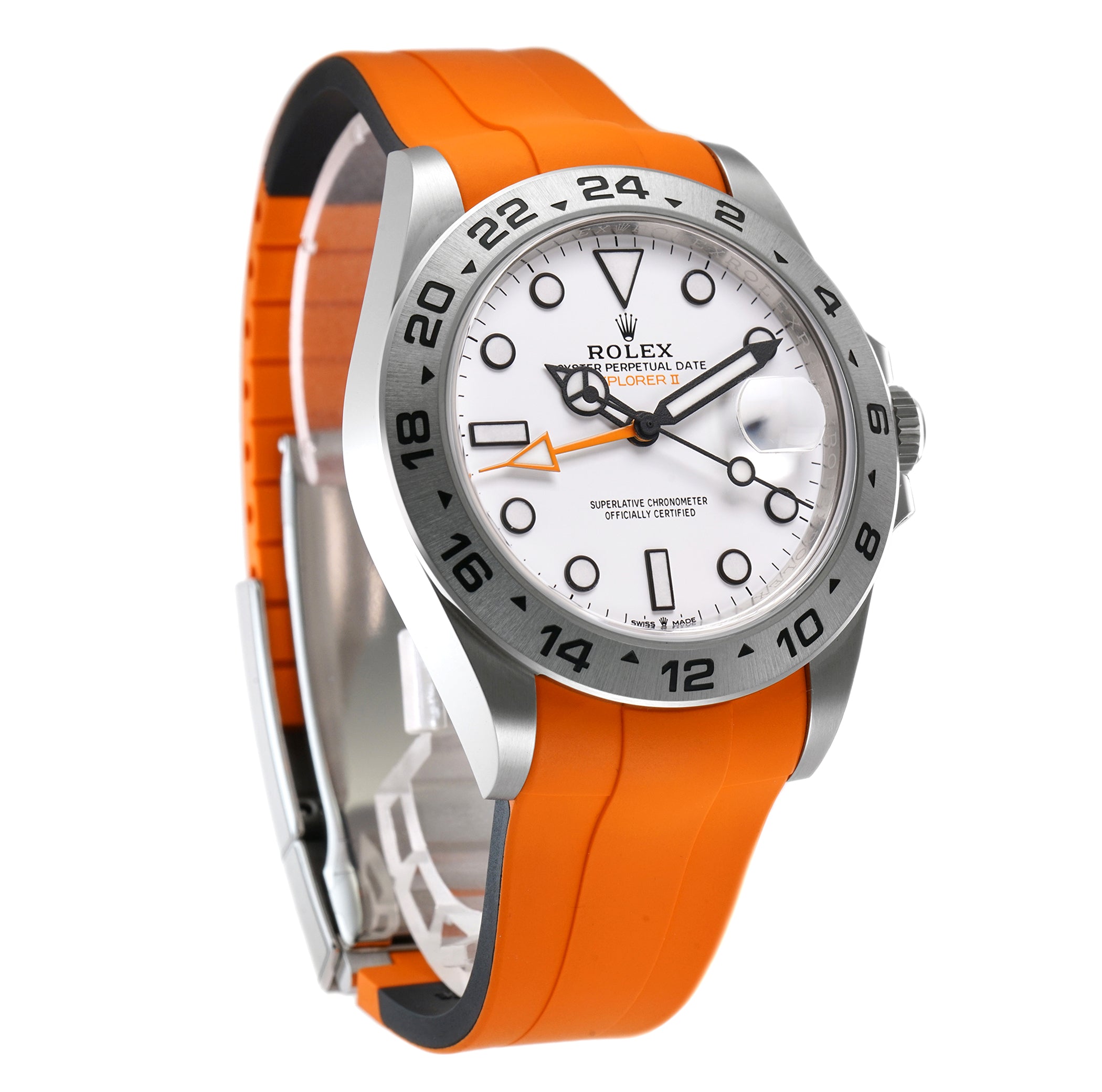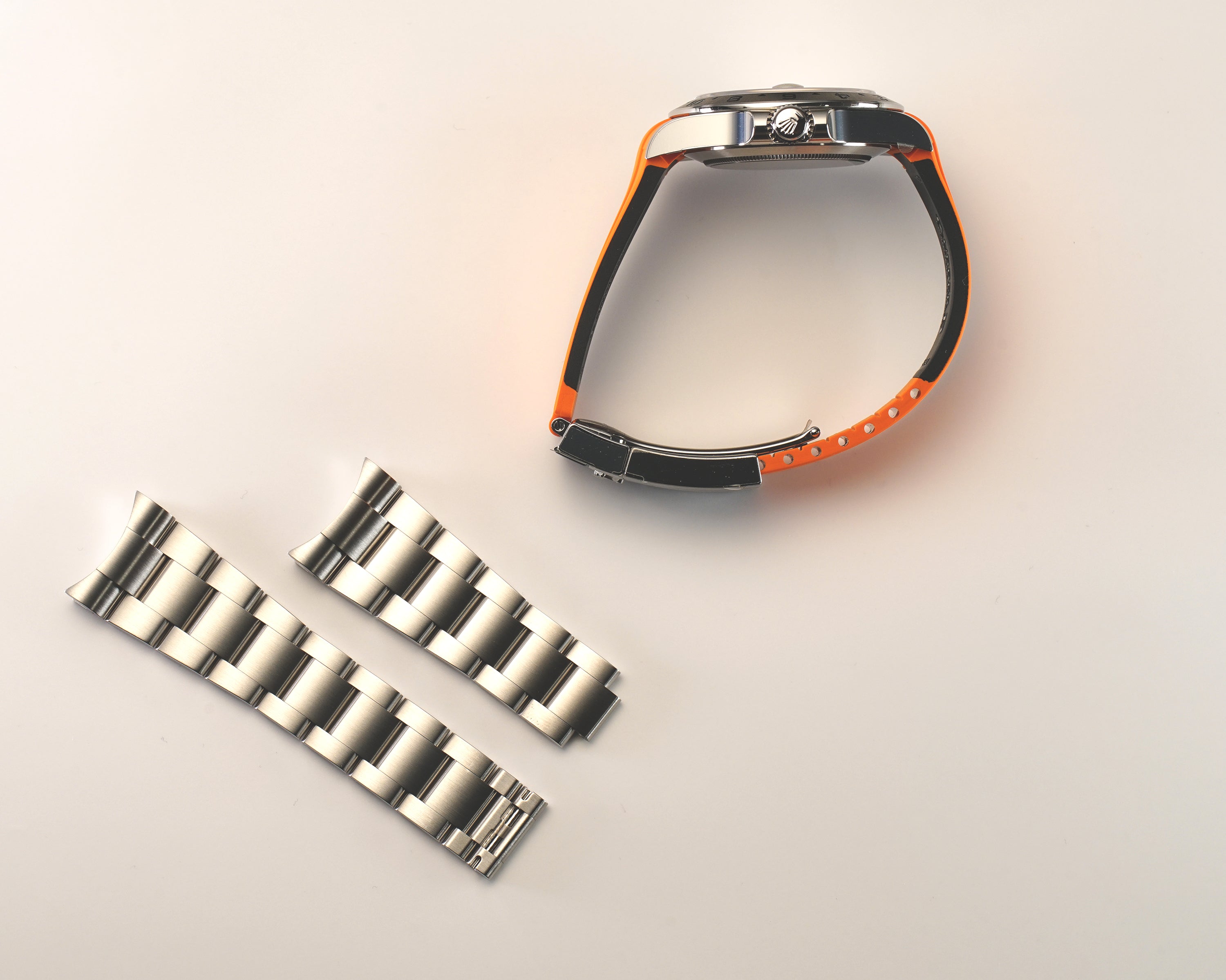 The watch comes with an unworn orange RubberB strap that is compatible with the Rolex folding clasp. These straps use vulcanized rubber so much more durable and comfortable.