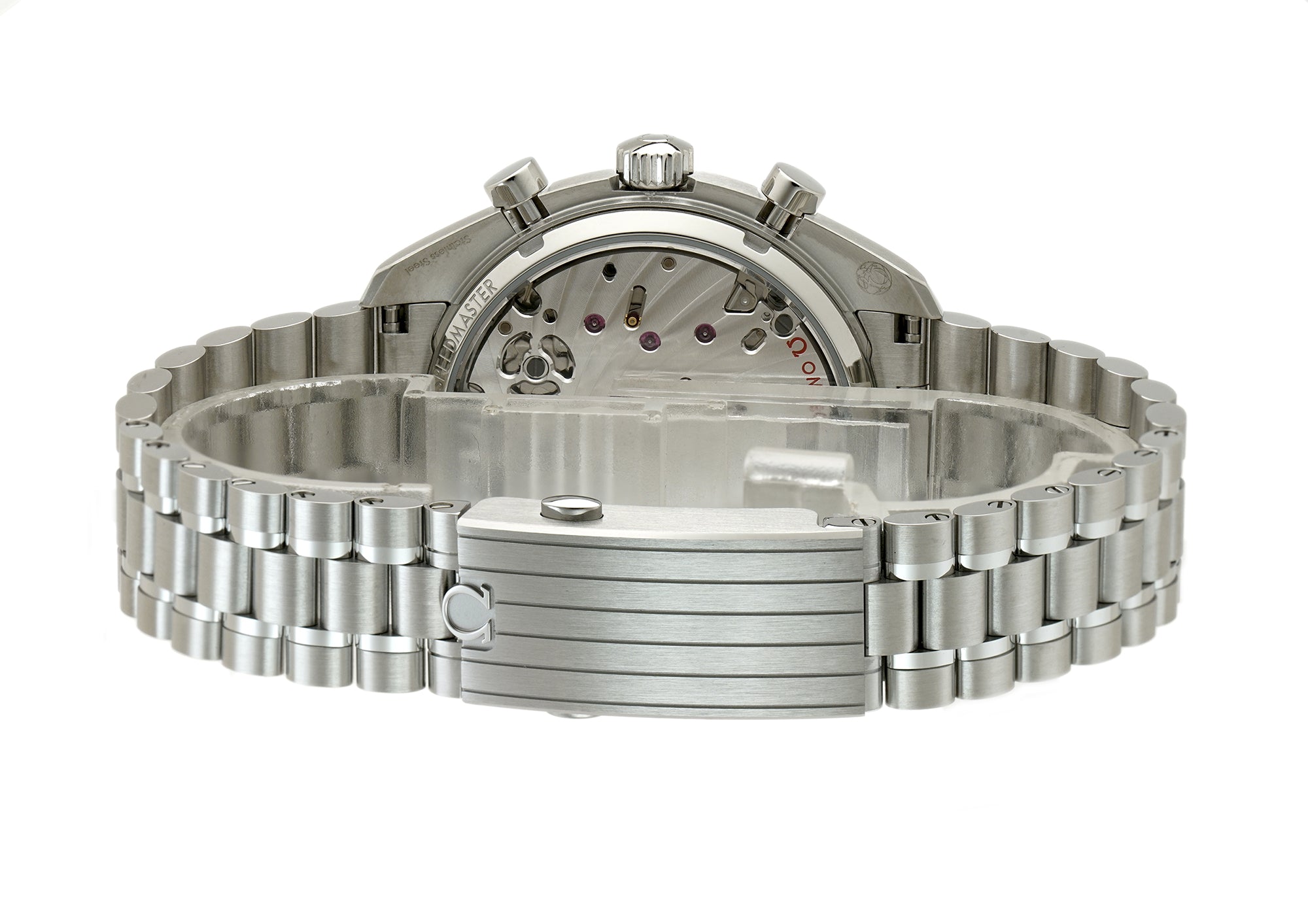 In an attempt to mix the look of the Speedmaster chronograph pieces from the 1940's "snail" design, to this 43mm master chronometer chronograph Omega successfully did that. Case is made of stainless steel and the bezel is made of a blue anodized aluminum with a tachymeter-scale mounted atop. What really makes this piece unique is the center of the dial that has a "spiral" track pattern beneath the numbers that has these three distinctive timing scales.