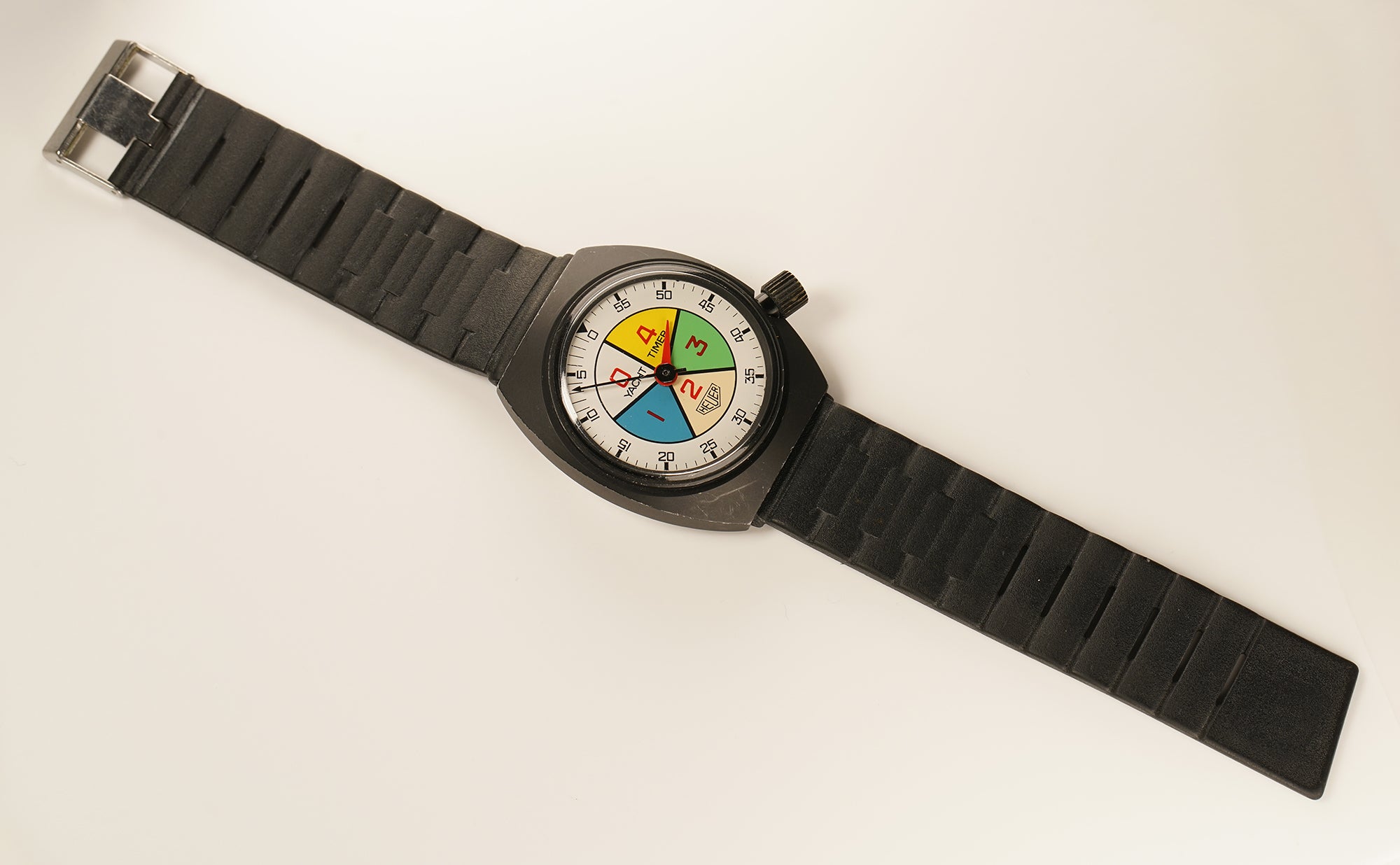 What makes this Yacht Timer so effective is the legibility of the dial that features a white background accompanied by colorful sections to distinguish minute by minute clearly.