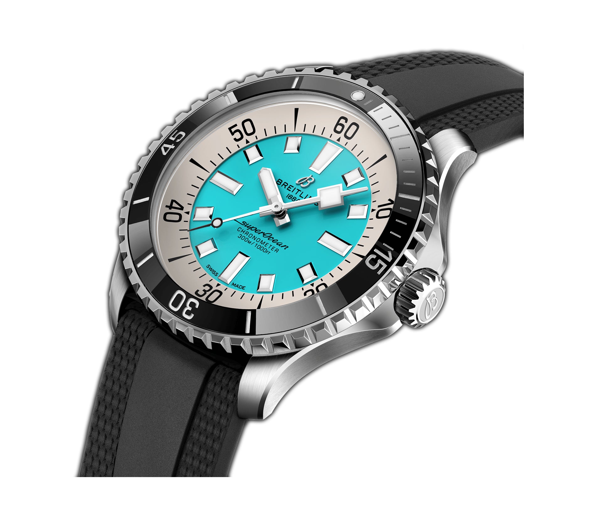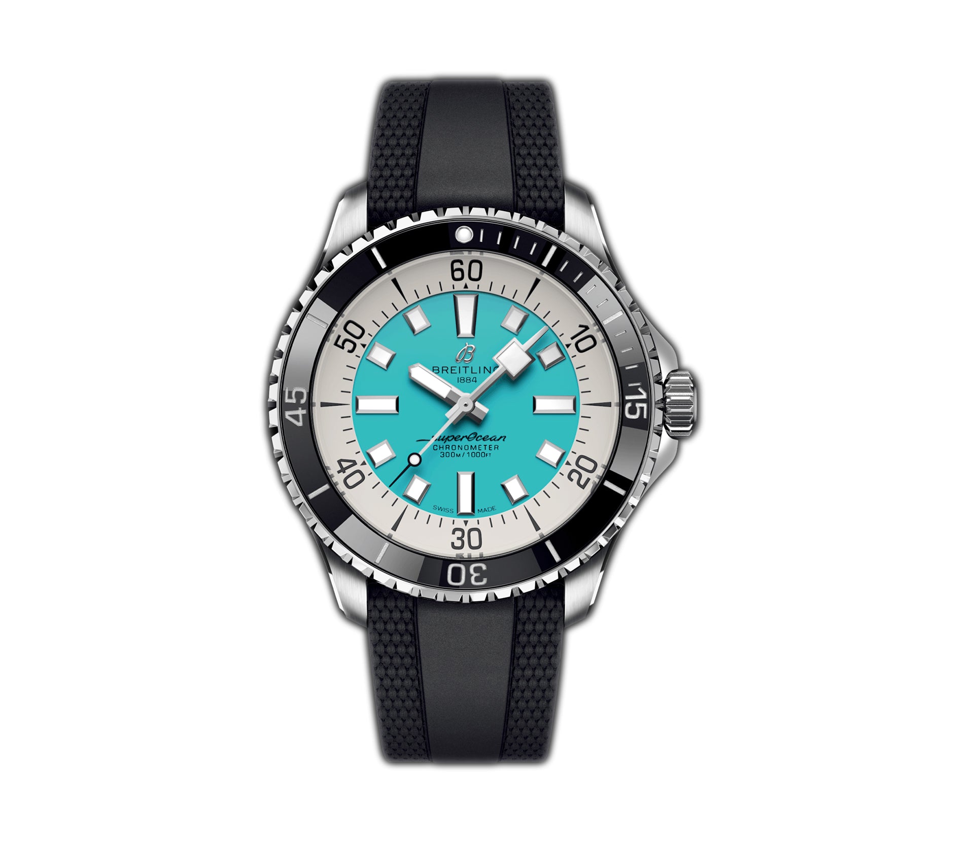 44mm Automatic Steel Turquoise Blue Dial on Rubber Strap
