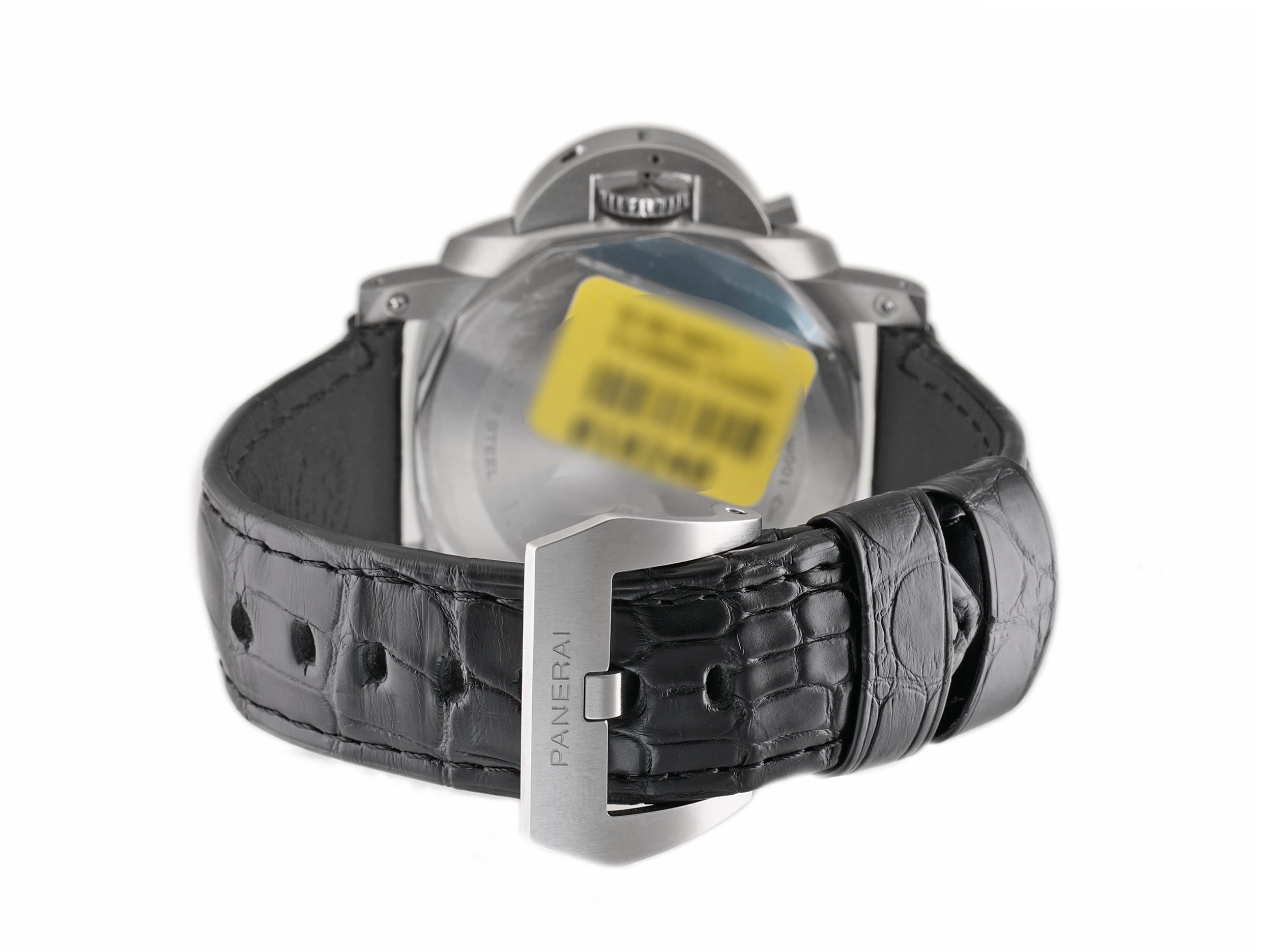 The case is made of brush finished stainless steel while the bezel mounted atop adds some contrast being of high-polish finished stainless steel. It is presented on a black leather strap with matching stitching and that is secured onto the wrist with the help of a stainless steel tang buckle.