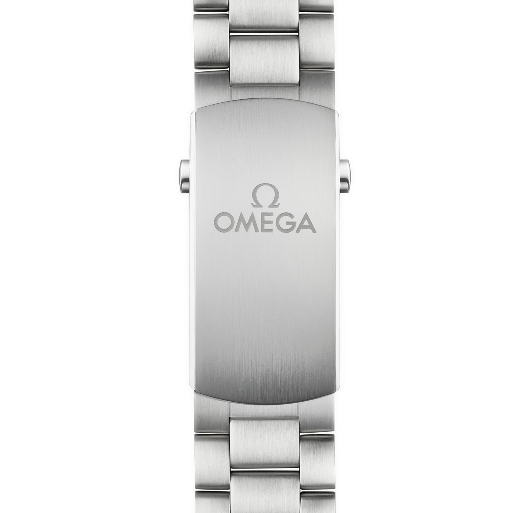 Case is made of a satin finished stainless steel with high polished finish on the edges, pushbuttons, crown, and escapement. Mounted atop the case is a high polished finish stainless steel bezel with a black ceramic bezel insert. This watch comes paired with a satin finished stainless steel bracelet.