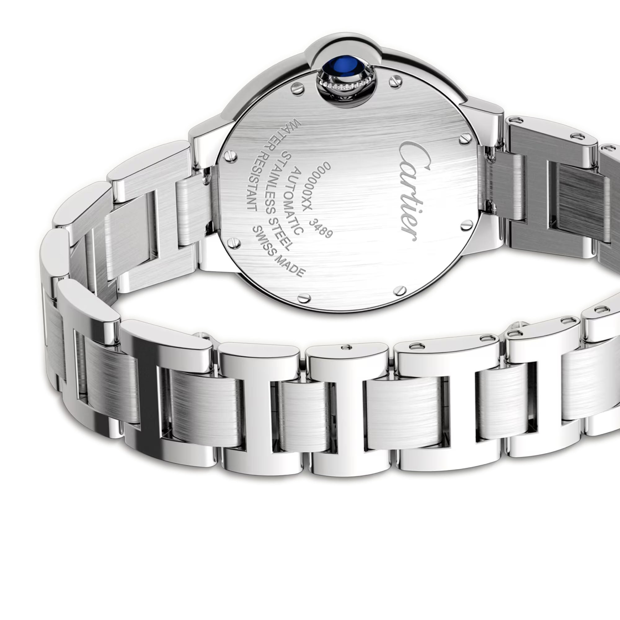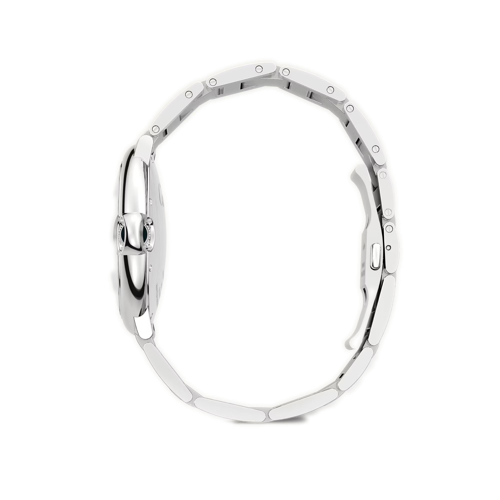 Case is made of high-polish finished stainless steel with a solid case back. Mounted atop the case is a factory set high polished bezel. Mounted on the watch Is a stainless steel bracelet that is secured onto the wrist with the help of a stainless steel double-folding deployment clasp.
