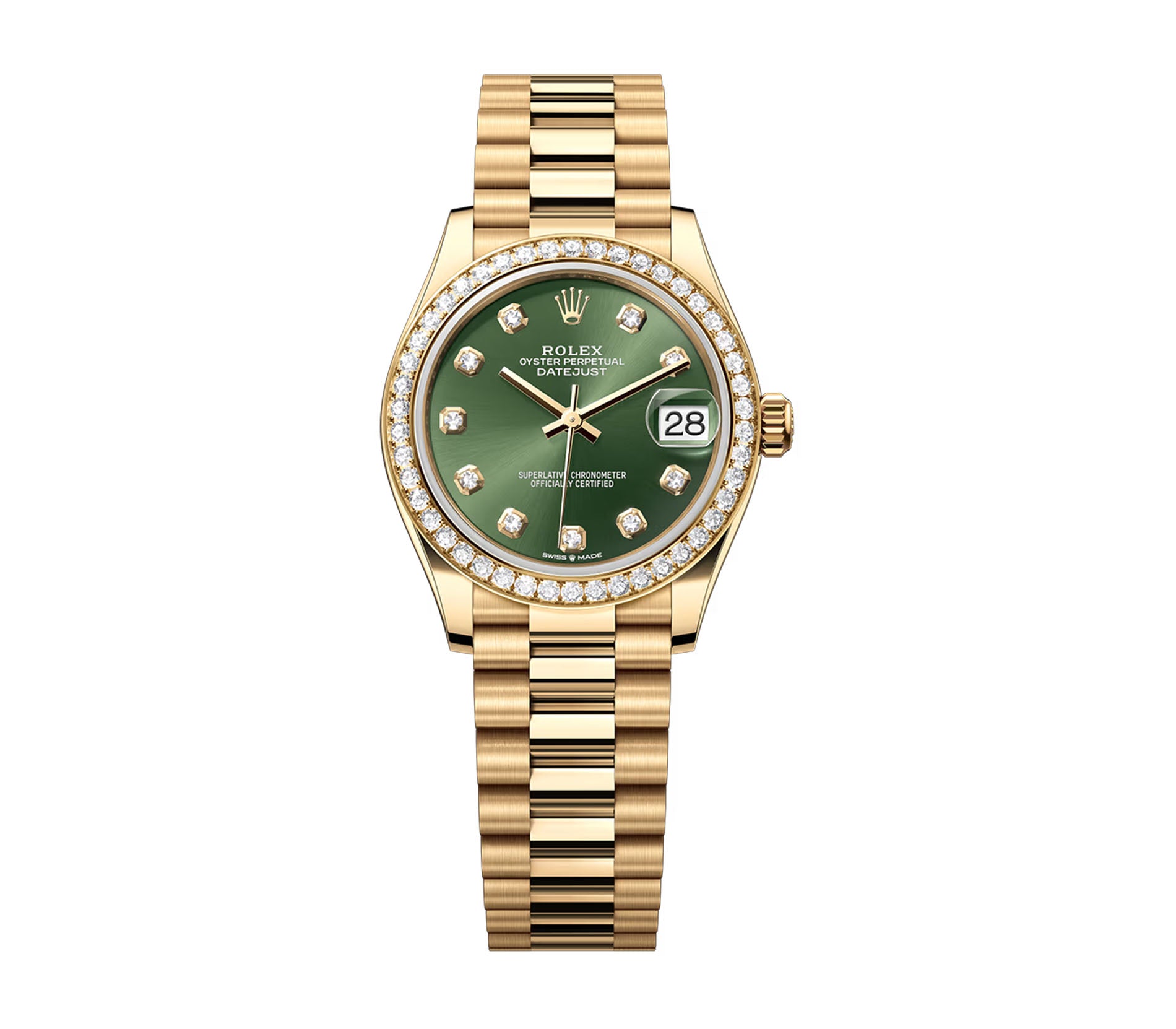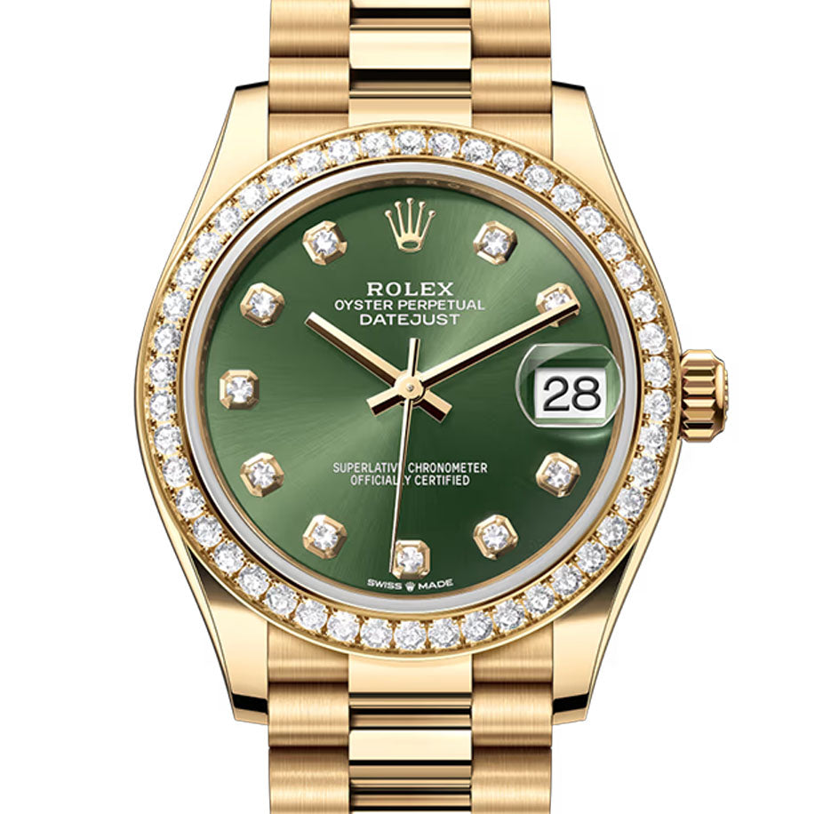 31mm 18k Yellow Gold President Diamond Bezel Olive-Green Diamond Dial