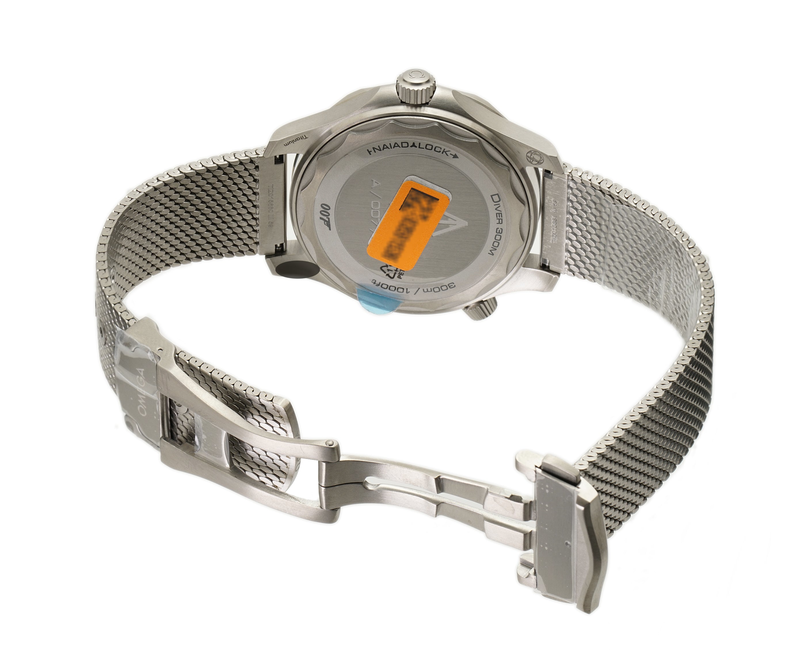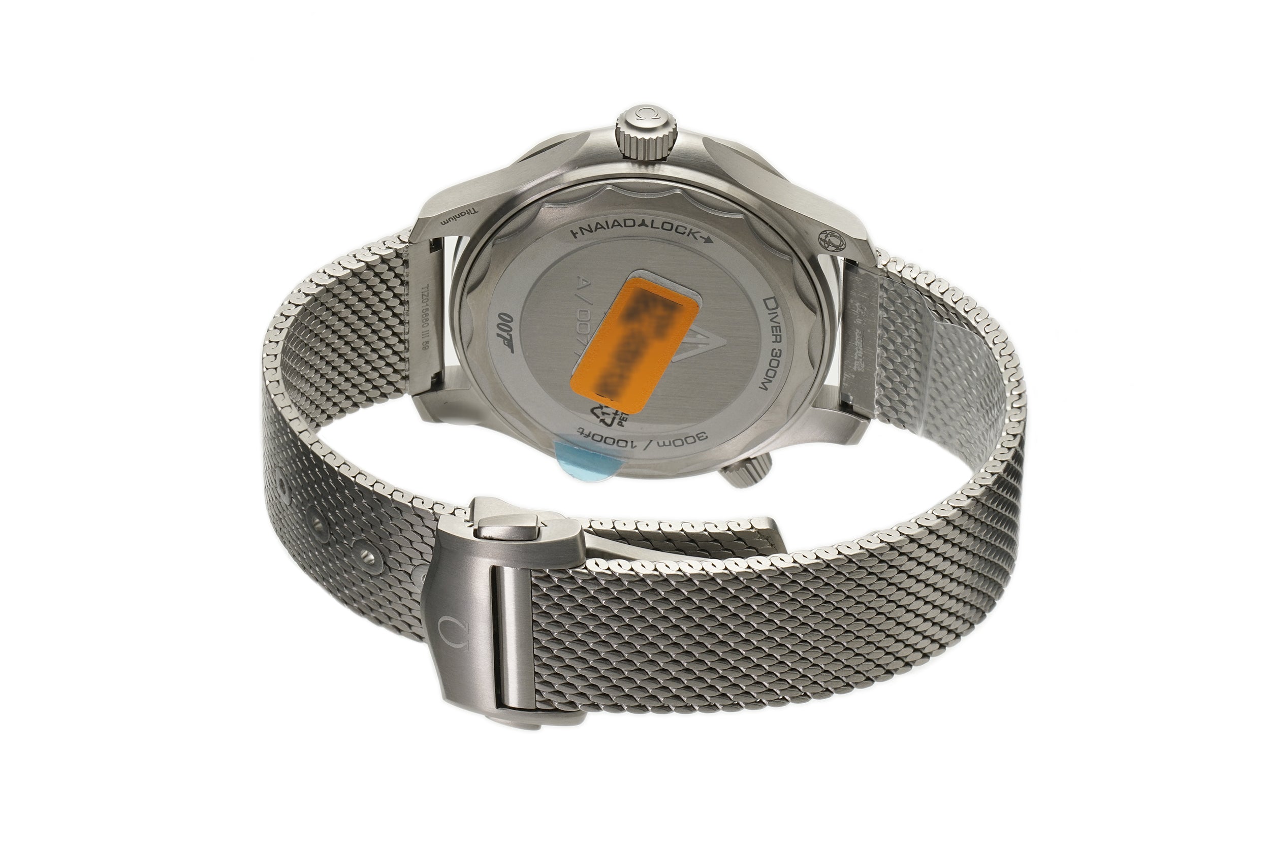 Case is made of brush-finished titanium and it is accompanied by a titanium mesh bracelet. The bezel mounted atop is also of titanium but is equipped with an aluminum diver's bezel insert. It is mounted on a titanium mesh bracelet (the updated current production version).