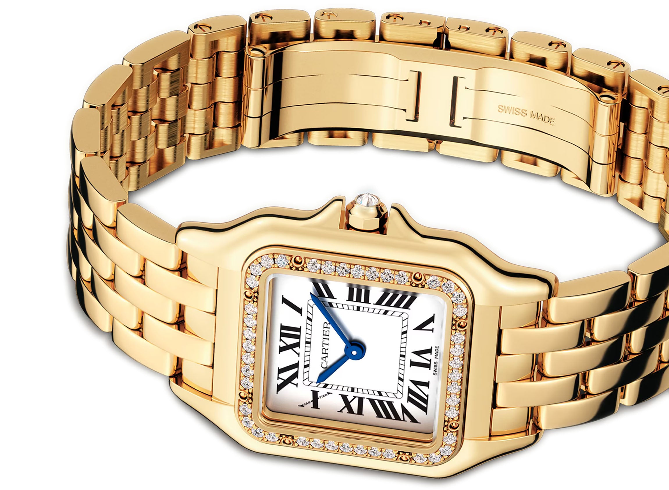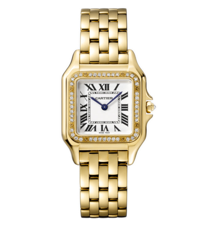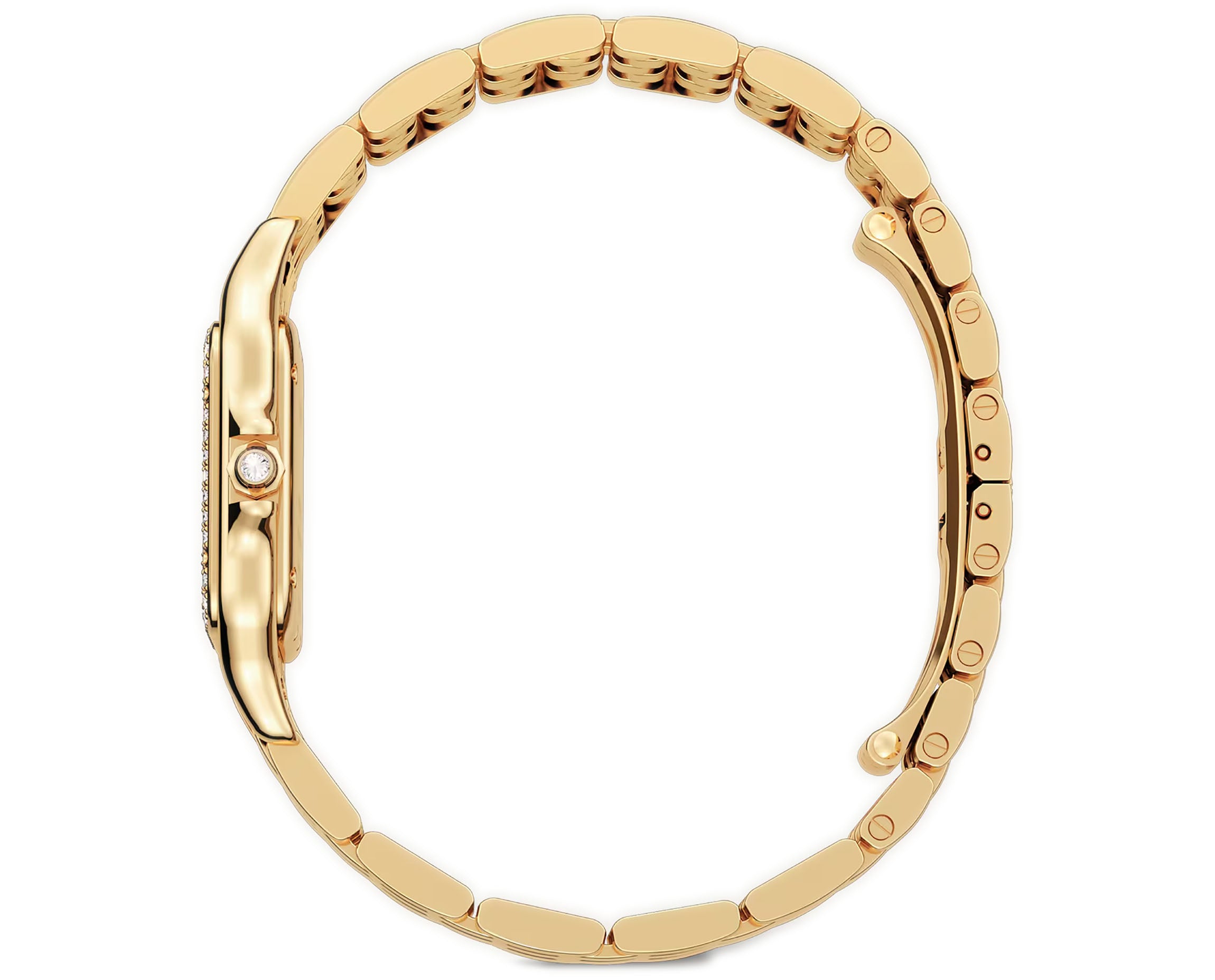 The case and bracelet are made of 18k yellow gold with the top side being mirror finished and the underside being satin finish. Mounted atop the case is an 18k yellow gold diamond bezel that is factory set.