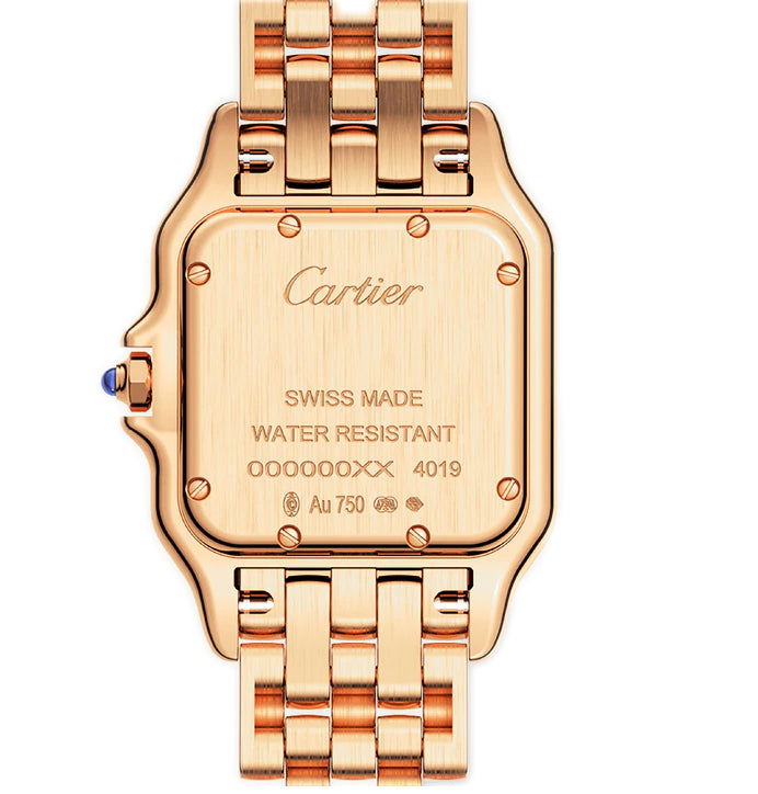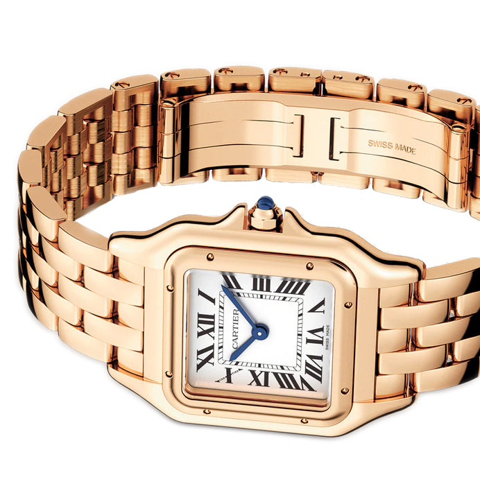 The case and bracelet are made of 18k rose gold with the top side being mirror finish and the underside being satin finish. Mounted atop the case is an 18k rose gold bezel.