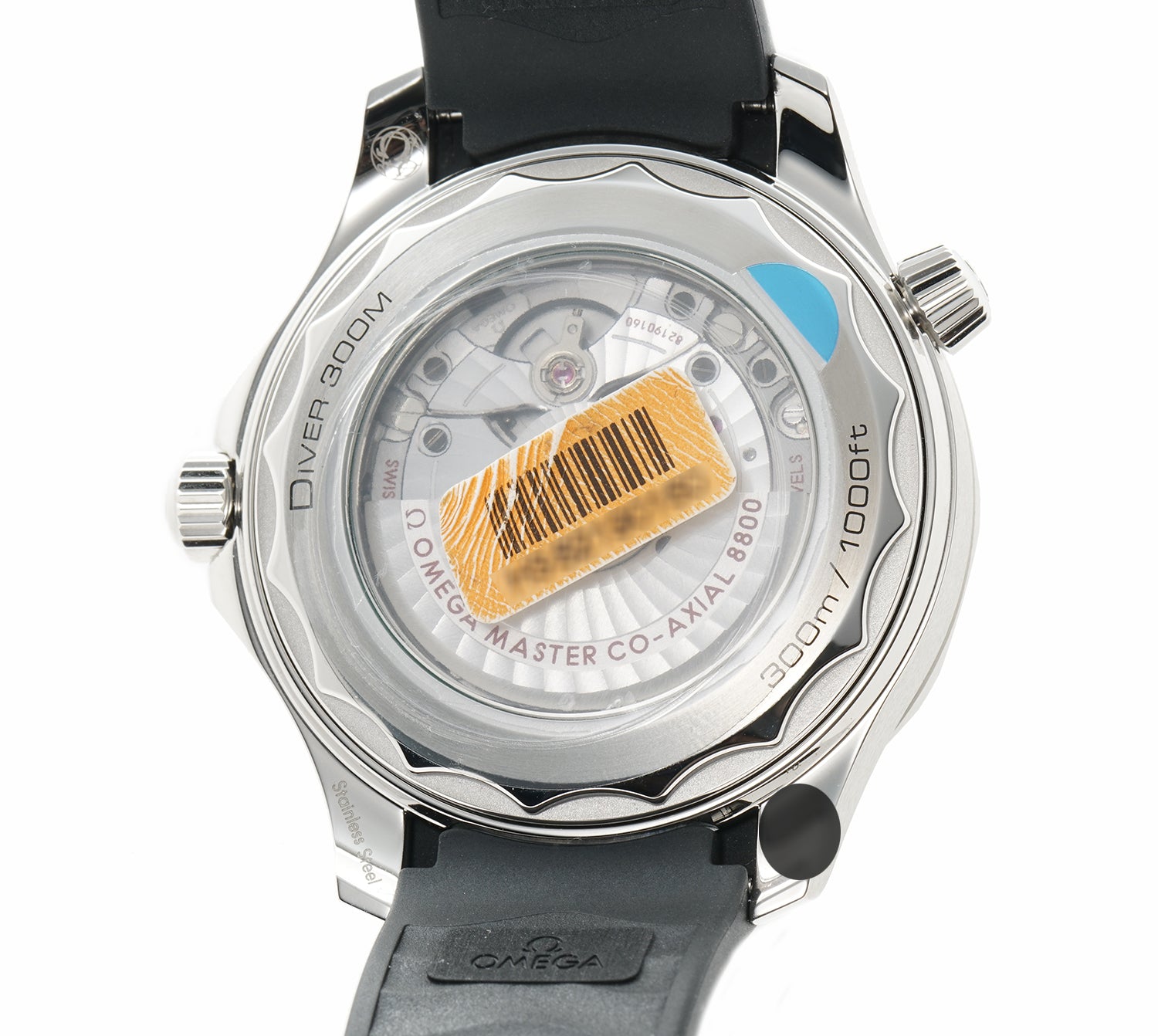 The case is made of a combined satin and mirror finish stainless steel including the crown. Mounted atop the case is a stainless steel bezel with a ceramic diver's bezel. Paired with the watch is a black rubber strap with a stainless steel tang buckle.