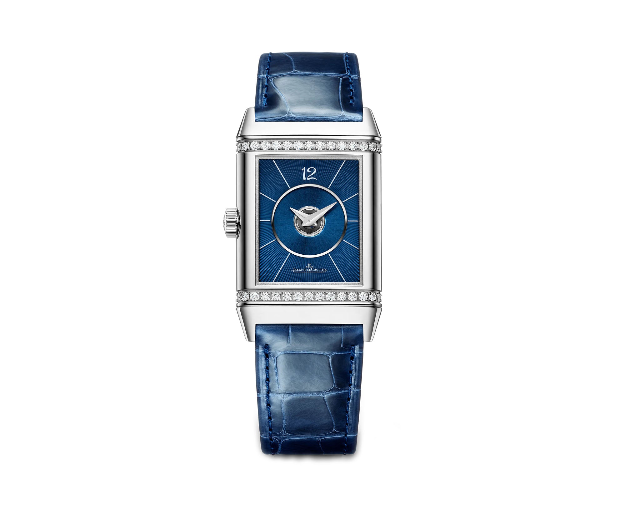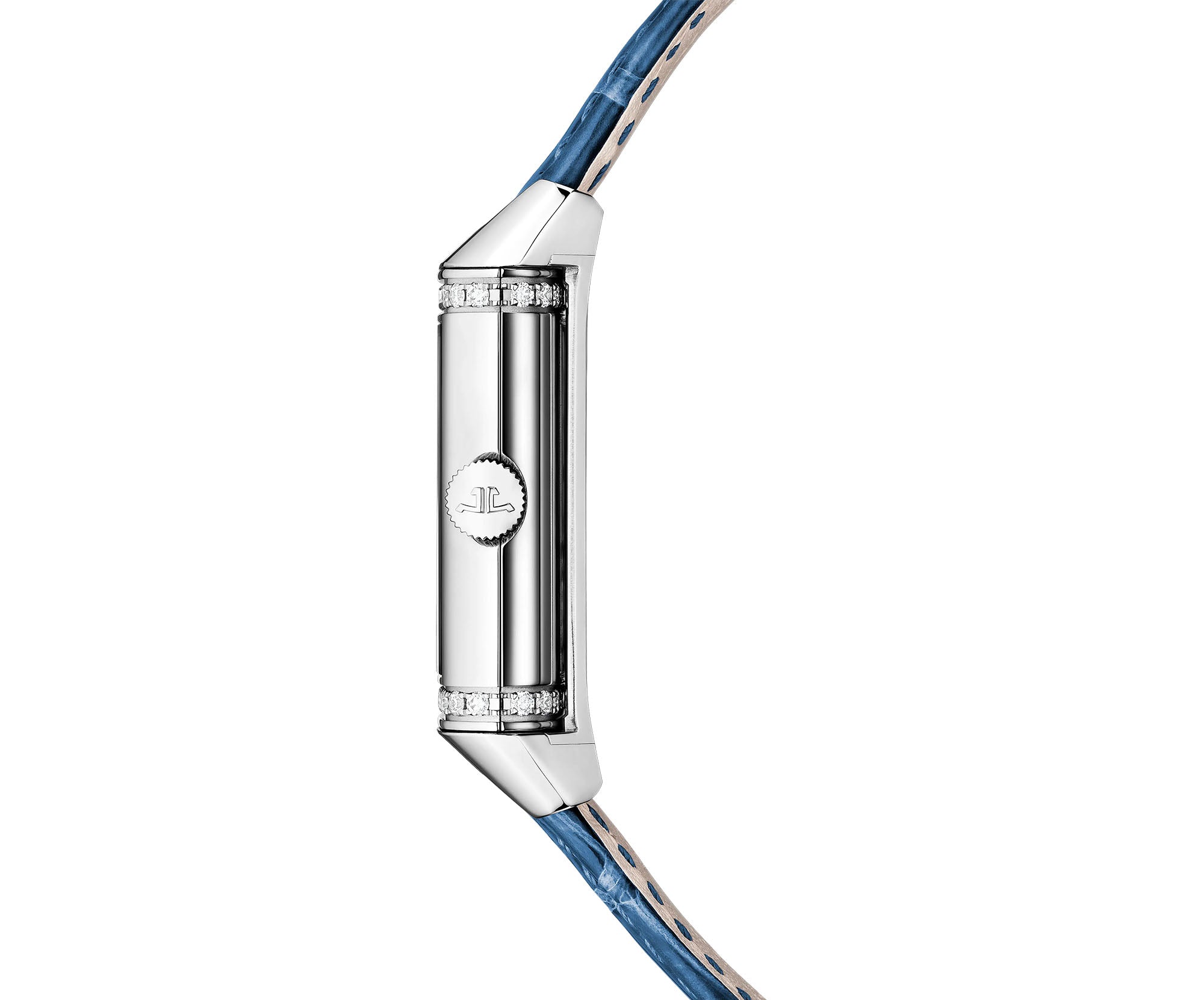 Currently mounted on the watch is a leather blue leather strap that is a perfect match. Securing the strap and watch around the wrist is a Jaeger-LeCoultre stainless steel pin buckle. Watch is water resistant up to 30 meters (100 feet).