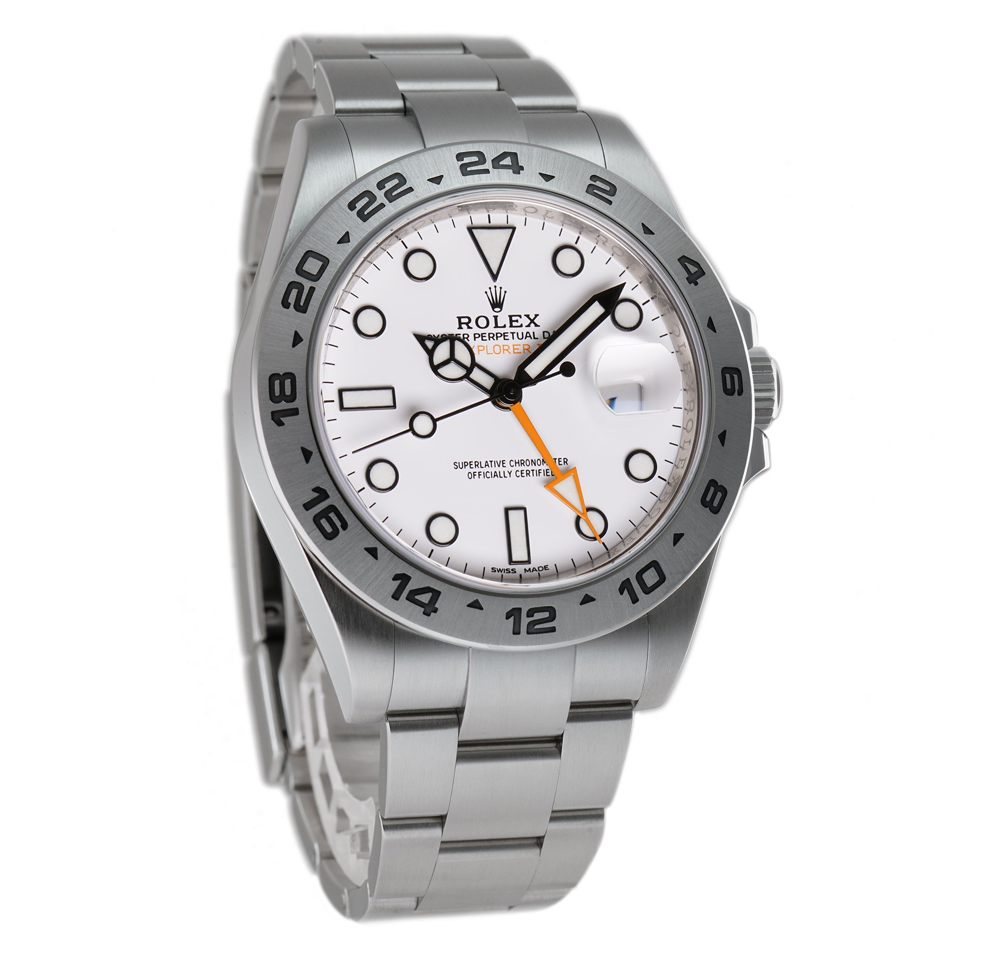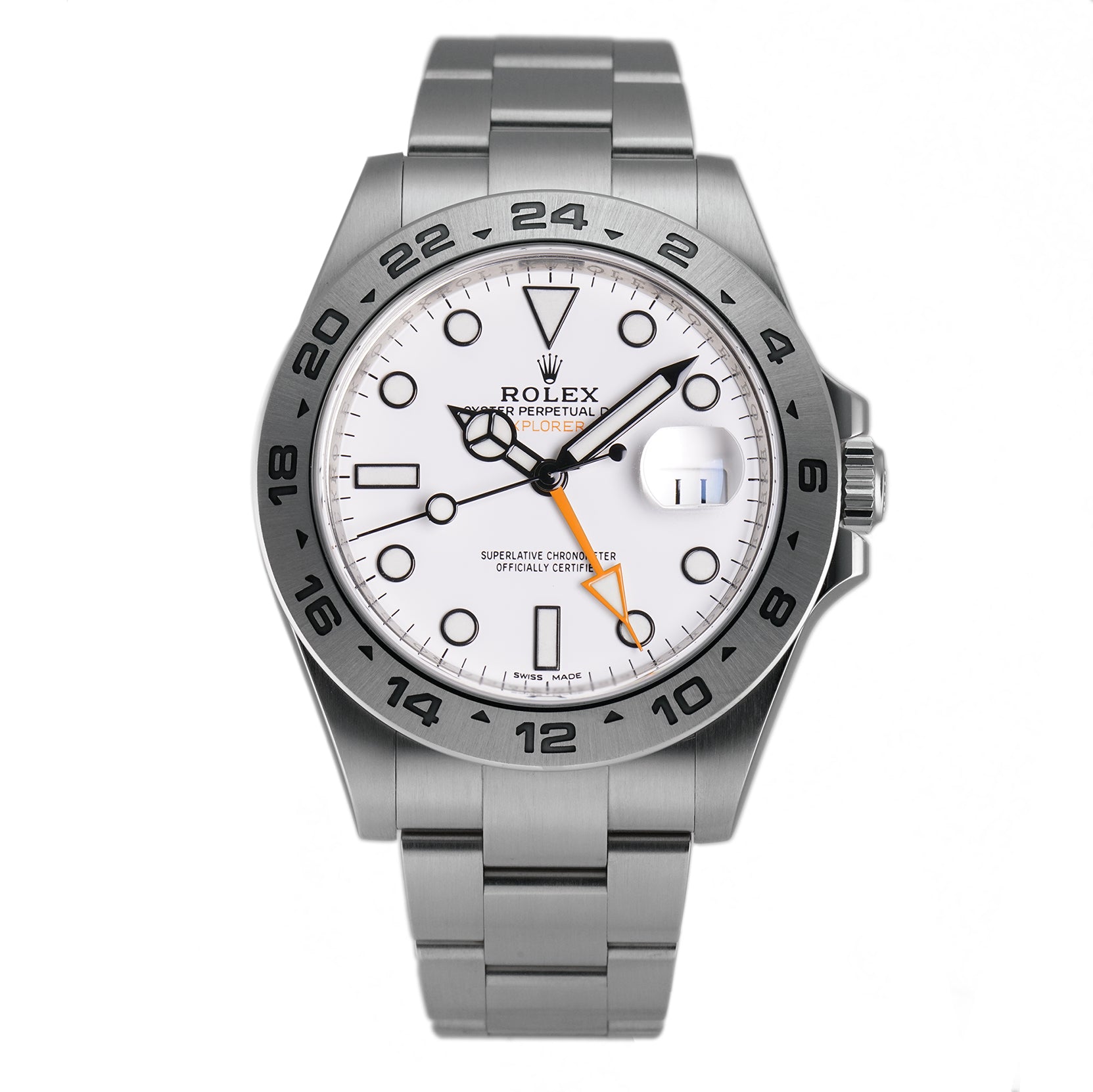 This 216570 Explorer II is in excellent condition for a second-hand watch. The case does have areas of mirror-like finish which are prone to hairlines (marks visible when with high resolution cameras or if angled at certain lighting).