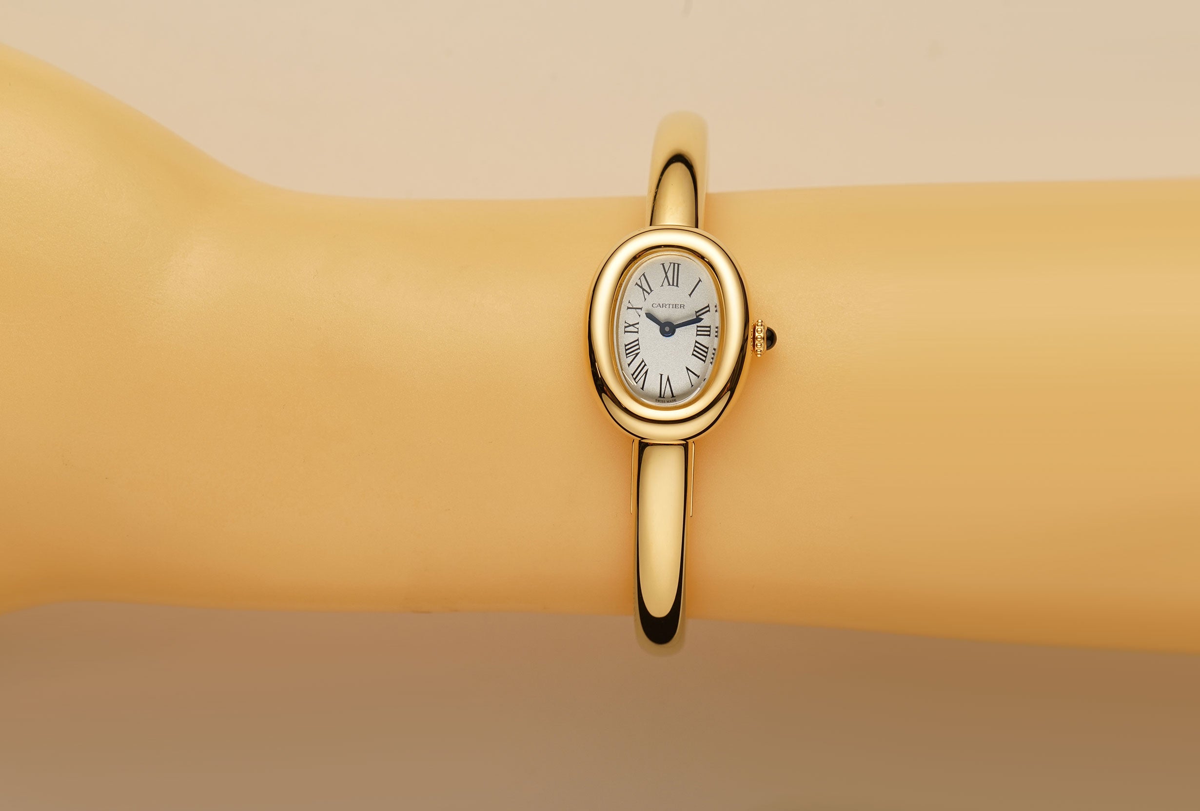 19mm 18k Yellow Gold Bangle Silver Roman Dial Size 16