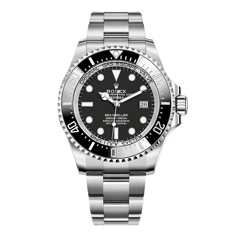 The case is made of stainless steel with brush-finished lugs and high-polish finished sides. Both the case back and crown are screw-down as well as stainless steel. Mounted atop the case is a unidirectional diver's bezel in stainless steel and equipped with a black cerachrom ceramic bezel insert. As for the oyster bracelet, it is brush-finished stainless steel.