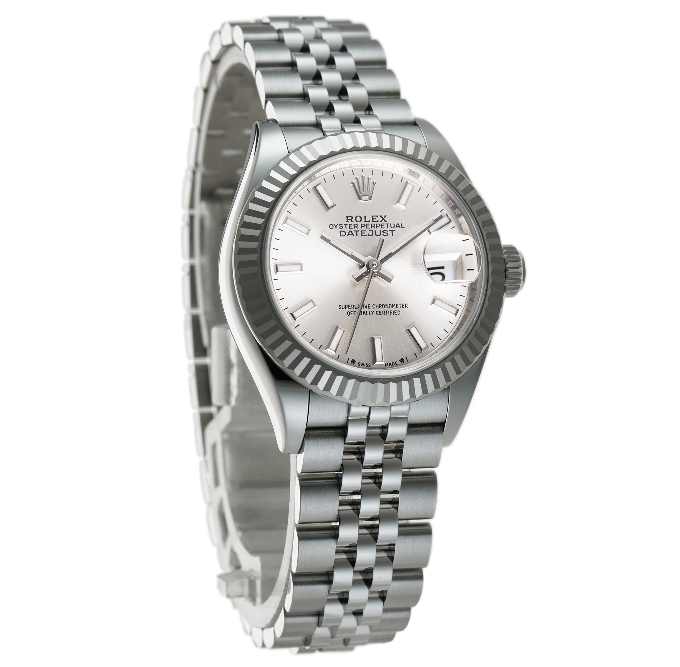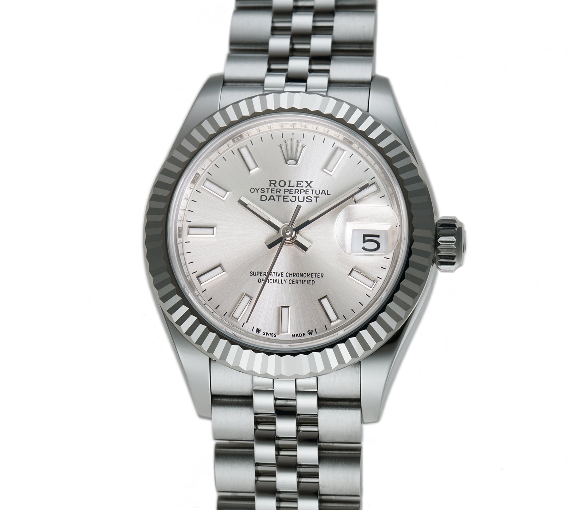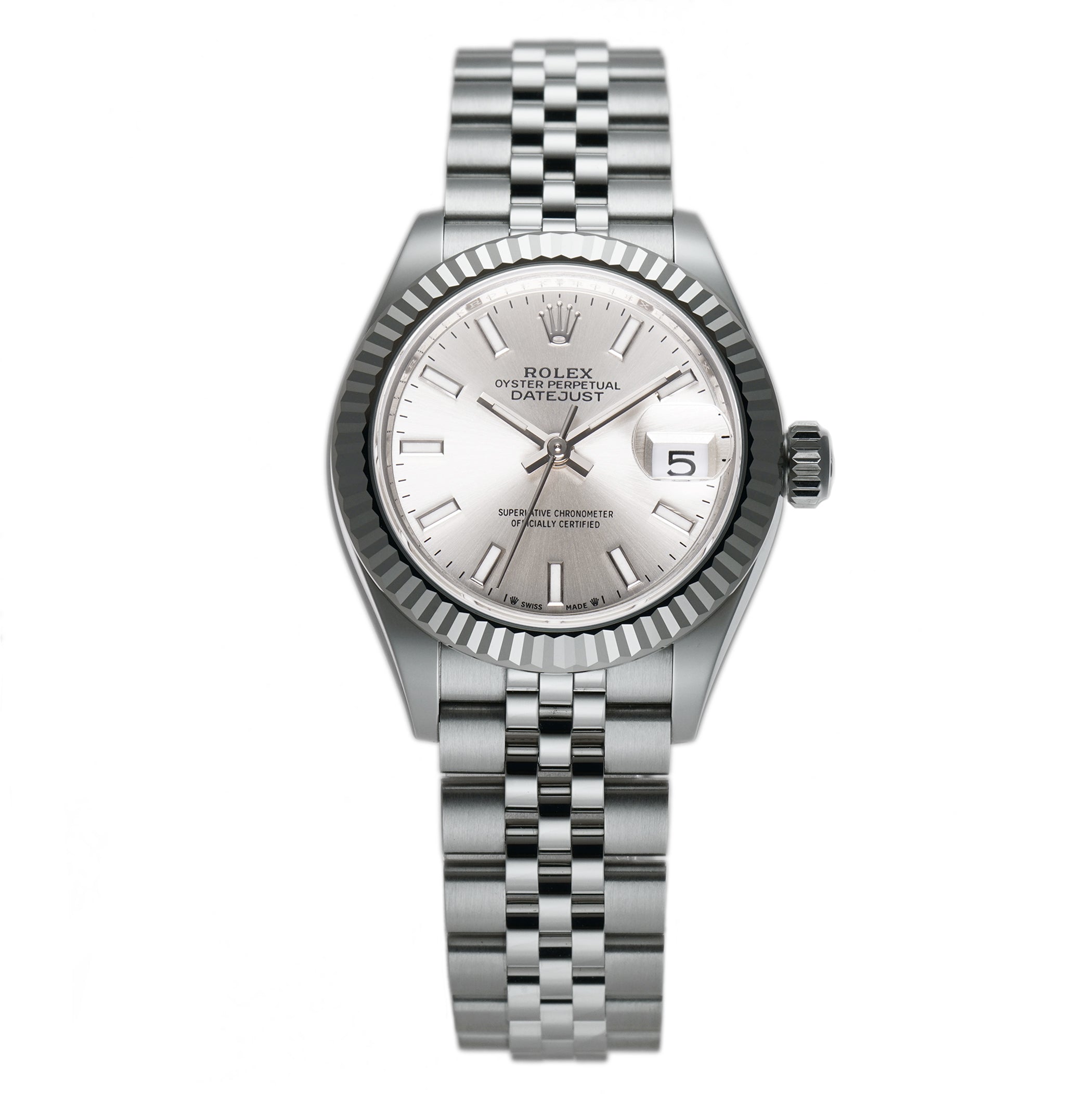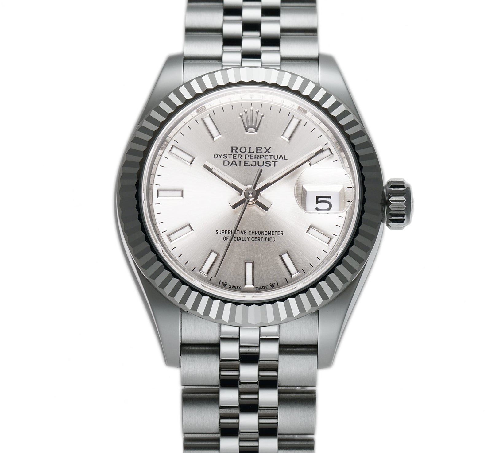 Steel 28mm Silver Index Dial 18k Fluted Bezel Jubilee Bracelet