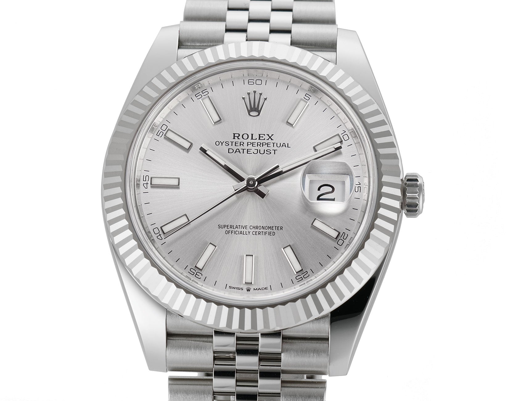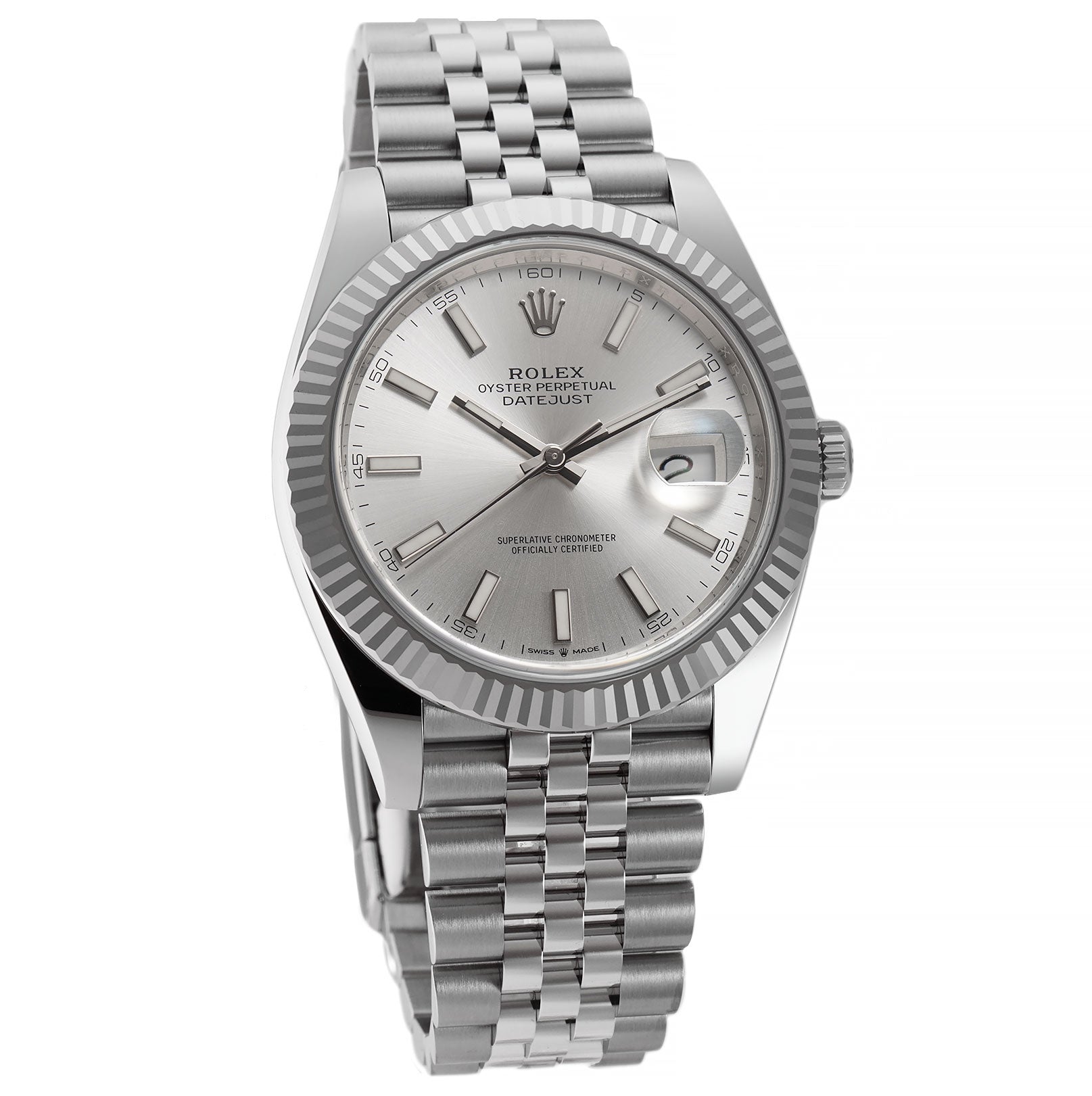 41mm Steel Silver Index Dial 18k Fluted Bezel Jubilee Bracelet