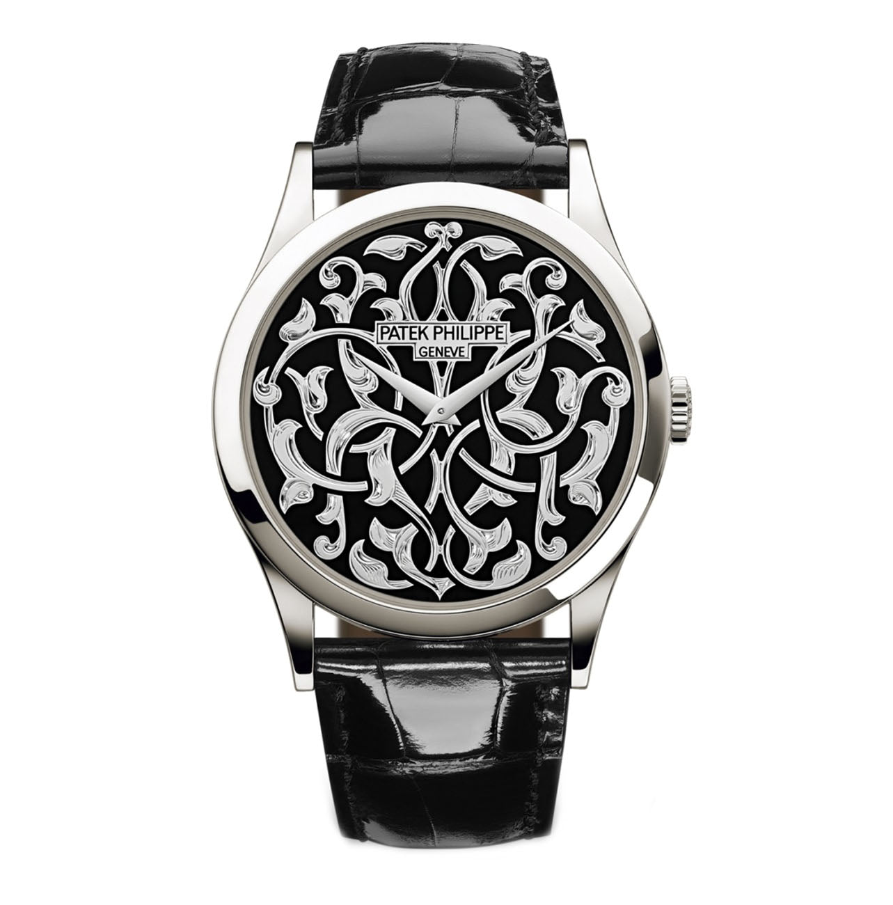 38mm Volutes And Arabesques Platinum Hand-Engraved Black Enamel Dial